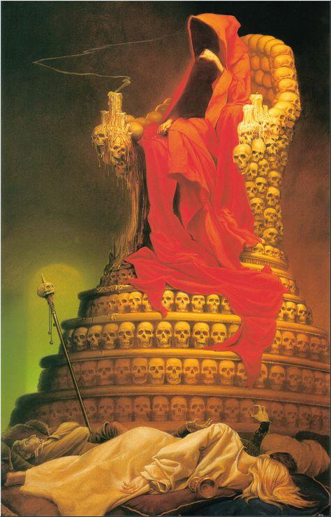 Born a god of immortality, it could have become a gentle deity who would offer an escape from war and death. Fearing their own demise, the brothers Bellum and Mortem corrupted their younger sibling into an existence that thrived on the stolen life force of others, ensuring the propogation of all three children. Now Sitim is a lazy deity, who grants vampirism to whoever catches its eye, leeching off every drop drained by his children.