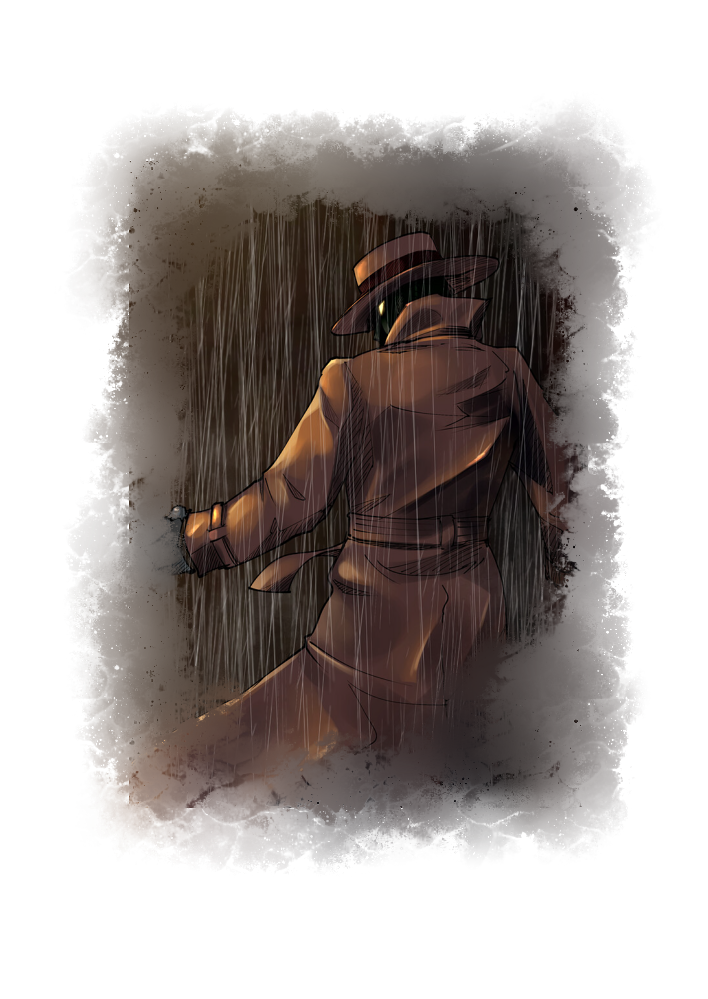 A human lurks in the shadows of an alley while his accomplice prepares for her part in the ambush. When their target—a notorious slaver—passes the alleyway, the accomplice cries out, the slaver comes to investigate, and the assassin's blade cuts his throat before he can make a sound.