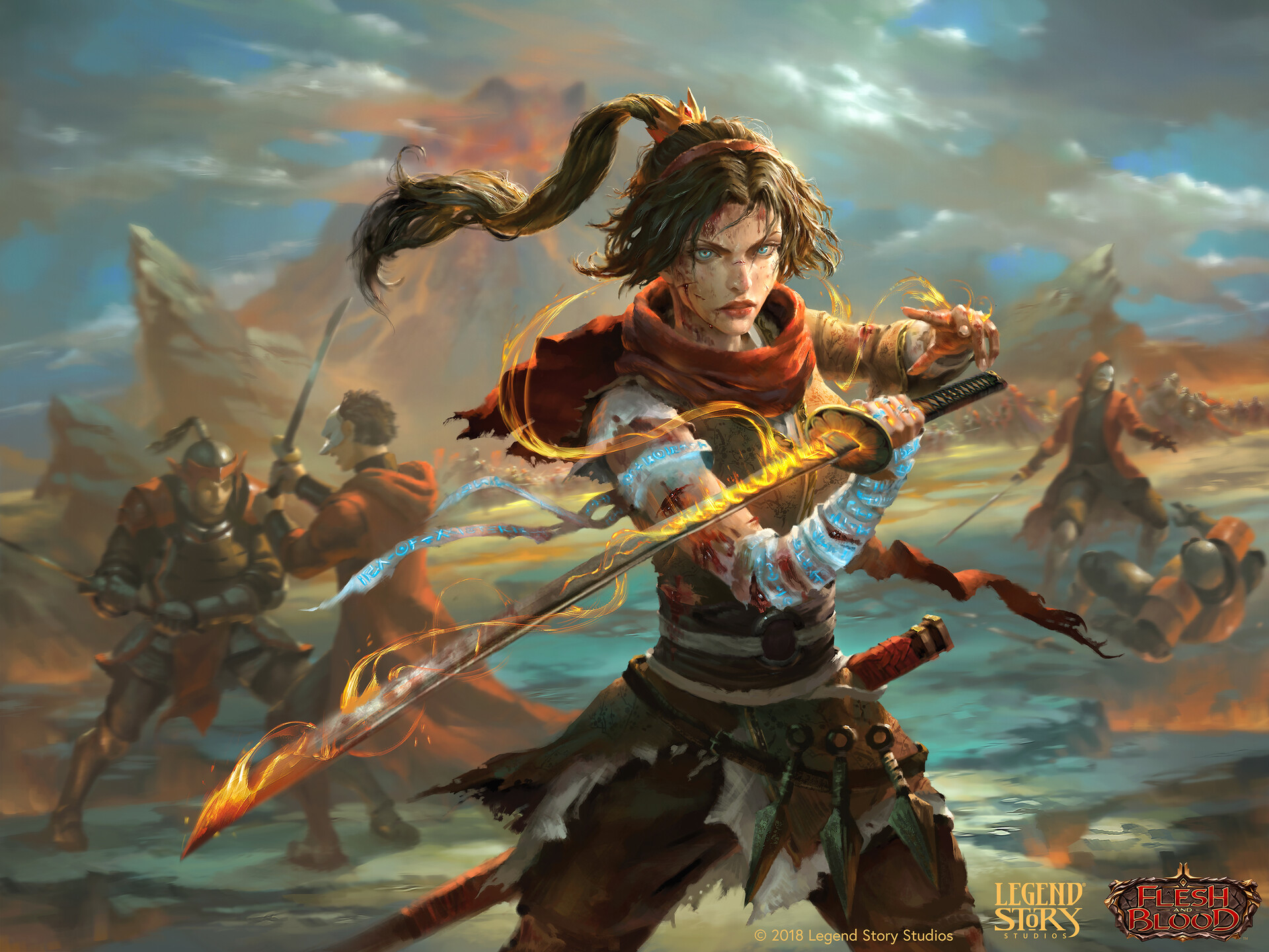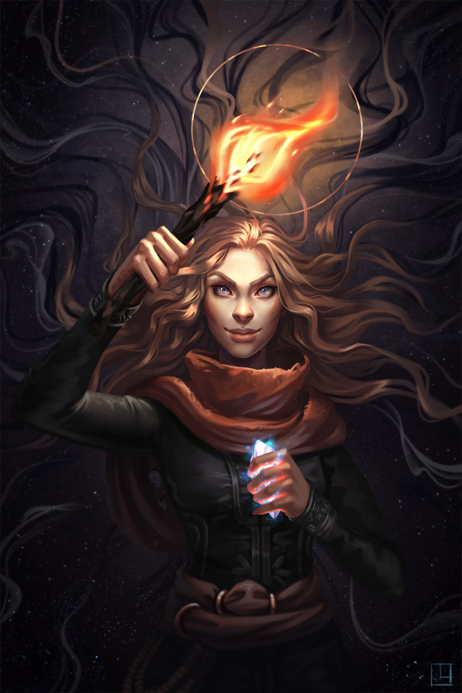 An elf in a rune-covered breastplate draws her sword, fire dancing at her outstretched fingertips as a horde of goblins races for the slender human wizard behind her, arcane energies flowing from his form as he recites an incantation. The goblins charge forward, only to be met by the roaring fireball the elf flung into their midst.