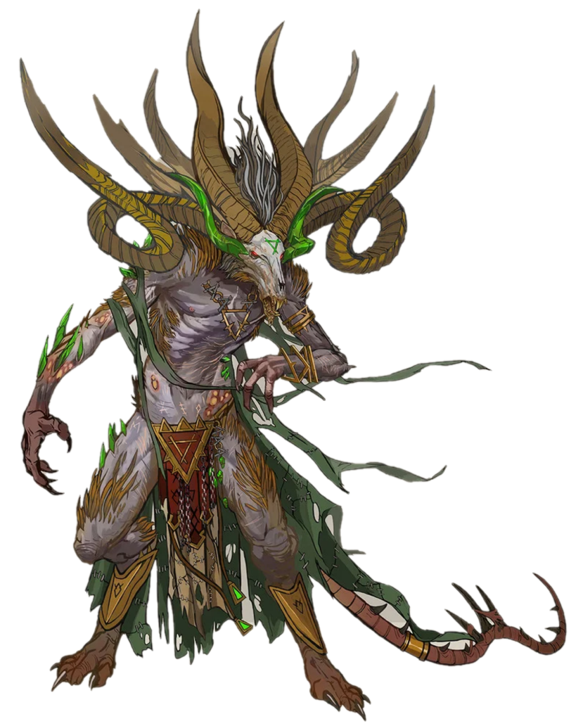 The appearance of your Aspect of The Great Horned Rat reflects your Patron's, shrouding you in green mist, forming horn-like appendages ontop of your head.