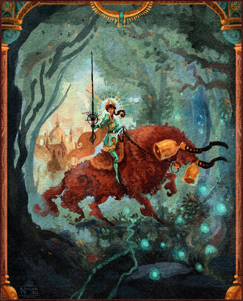 A warrior wielding a bow lies in wait as it looks for an opportunity to loose its arrow. As their prey is lulled into a false of security, the warrior looses their bow as a panther strikes from the underbrush, attacking in unison.