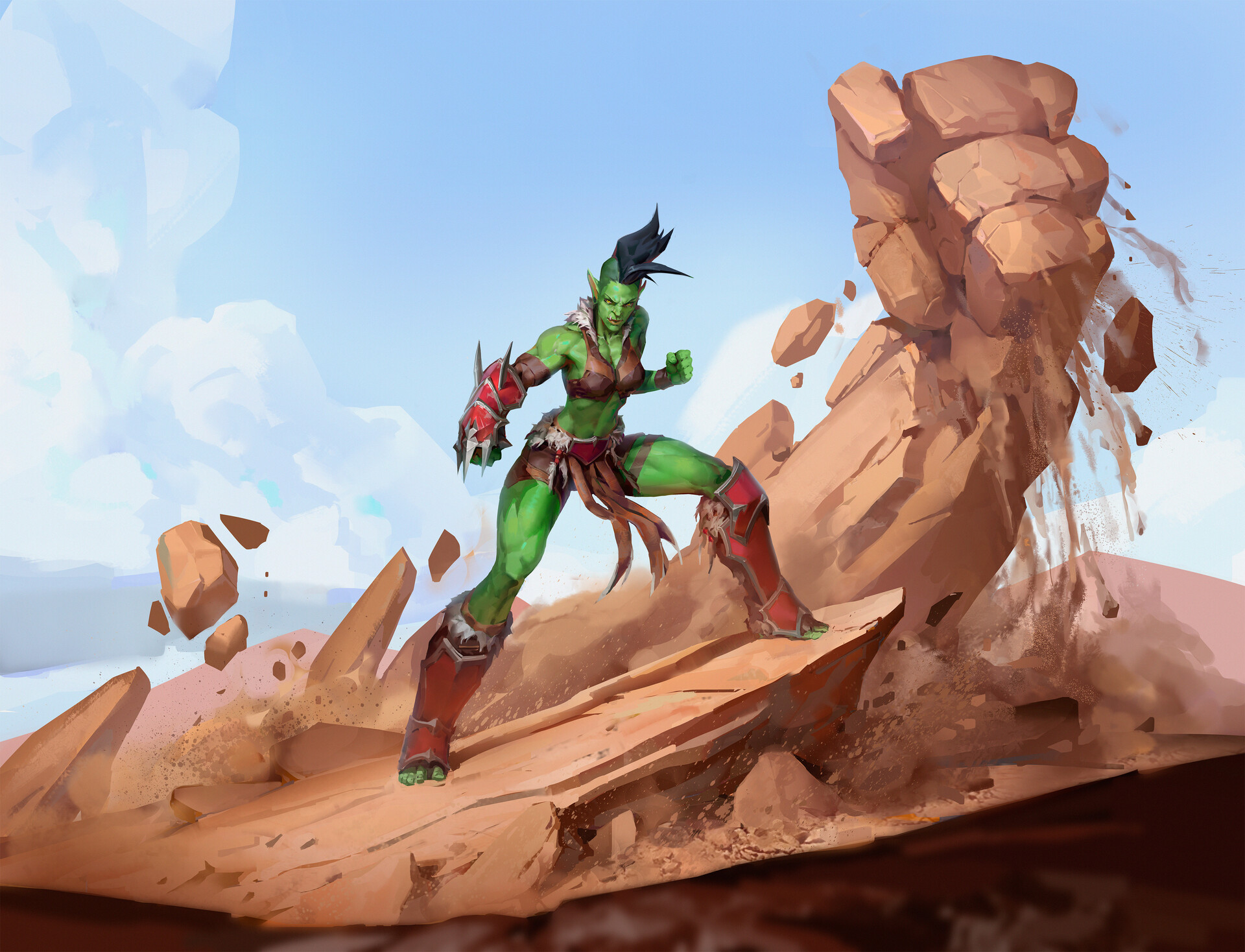 With a hand to the earth, the muscular half-orc grinned as earth rolled up her arms and compressed into rough plating along her shoulders, before coating the entirety of her body in earthen armor just as the jaws of the ankheg snapped at her waist, only cracking and crumbling the rock. But instead of backing down, the half-orc rose her arm, to her God above, and slammed downwards as earth coalesced into a massive fist around her own; shattering the ankheg’s skull in one simple strike.