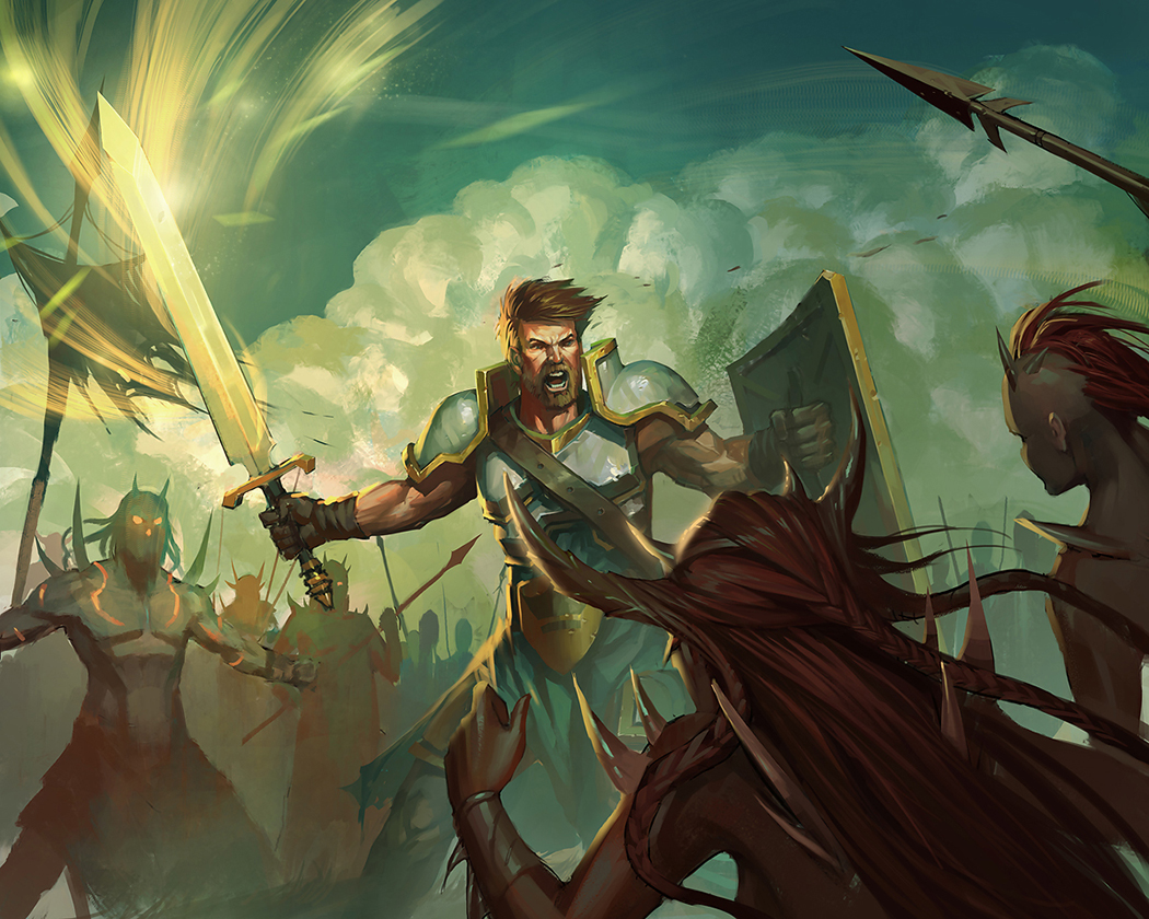You imbue your weapon in dazzling sunlight. As part of the action used to cast this spell, you must make an attack with a weapon against one creature, otherwise the spell fails. On a hit, the creature suffers the attack’s normal effects, and they are marked with a radiant brand until the start of your next turn. If the creature is hit with a weapon attack by another creature other than you while it is branded, it takes additional radiant damage equal to your Spellcasting modifier.