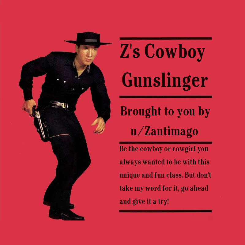This class is thematically based on western movies such as The Good, the Bad and the Ugly or Once Upon a Time in the West, and somewhat inspired by other gunslingers like Matthew Mercer's Gunslinger , DandD Wiki's Gunslinger class or u/Ujio21 and /u/xQF13's Gunslinger.