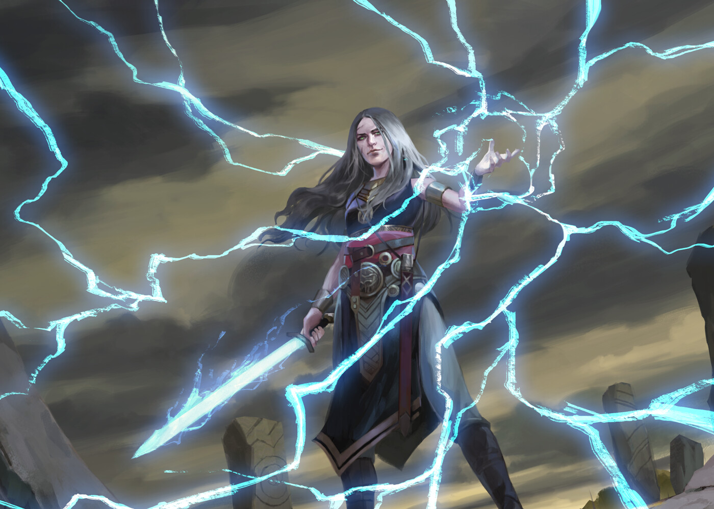 A human scholar pores over his notes about thunderclap and lightning bolt. Suddenly realizing something he hadn't before, the scholar jumps to his feet, summons his magical power, and successfully invokes a sphere of exploding bolts around him. Now all he needed was a name for his newly invented spell.
