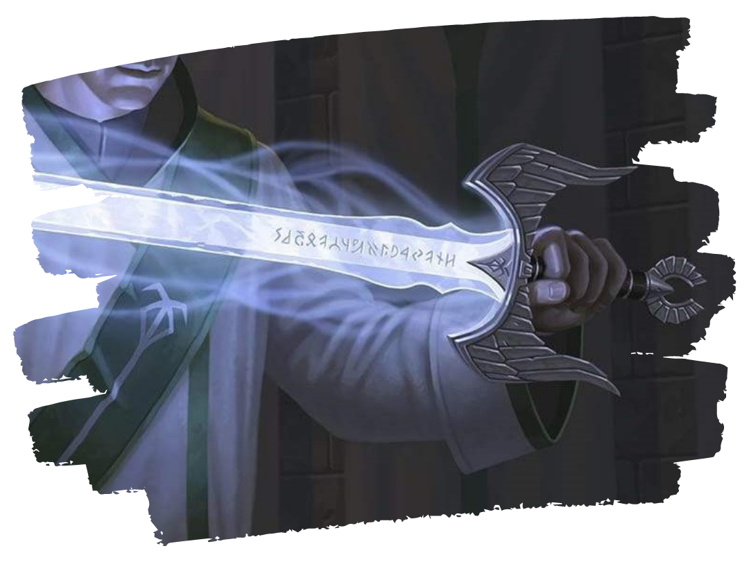 Strength of Arms & Soul. You can cast the blade ward cantrip at will while holding this magic weapon. Additionally, you can cast certain spells while holding this magic weapon depending on your Strength and Charisma scores. You can cast each spell once, and you regain all expended uses when you finish a short or long rest. You don't require verbal components for spells or cantrips cast in this way, and you can use this magic weapon as a spellcasting focus for these spells and cantrips.