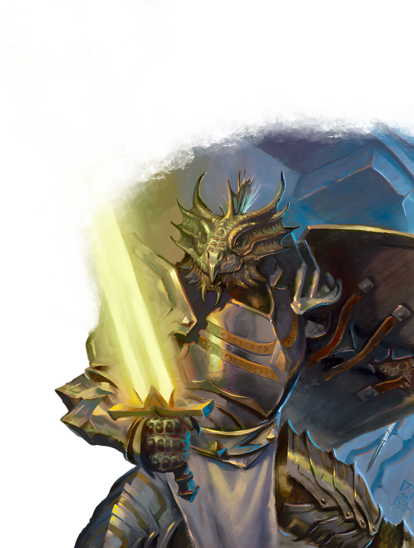 - You supernaturally bolster your plates and coats of mail. Until initiative count 20 on the next round, you and your allies have resistance to all damage except psychic damage as long as you are wearing medium or heavy armor.