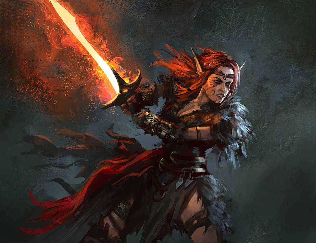 A half-orc snarls at the latest challenger to her authority over the city, ready to break his neck with her bare hands as she did to the last six rivals.