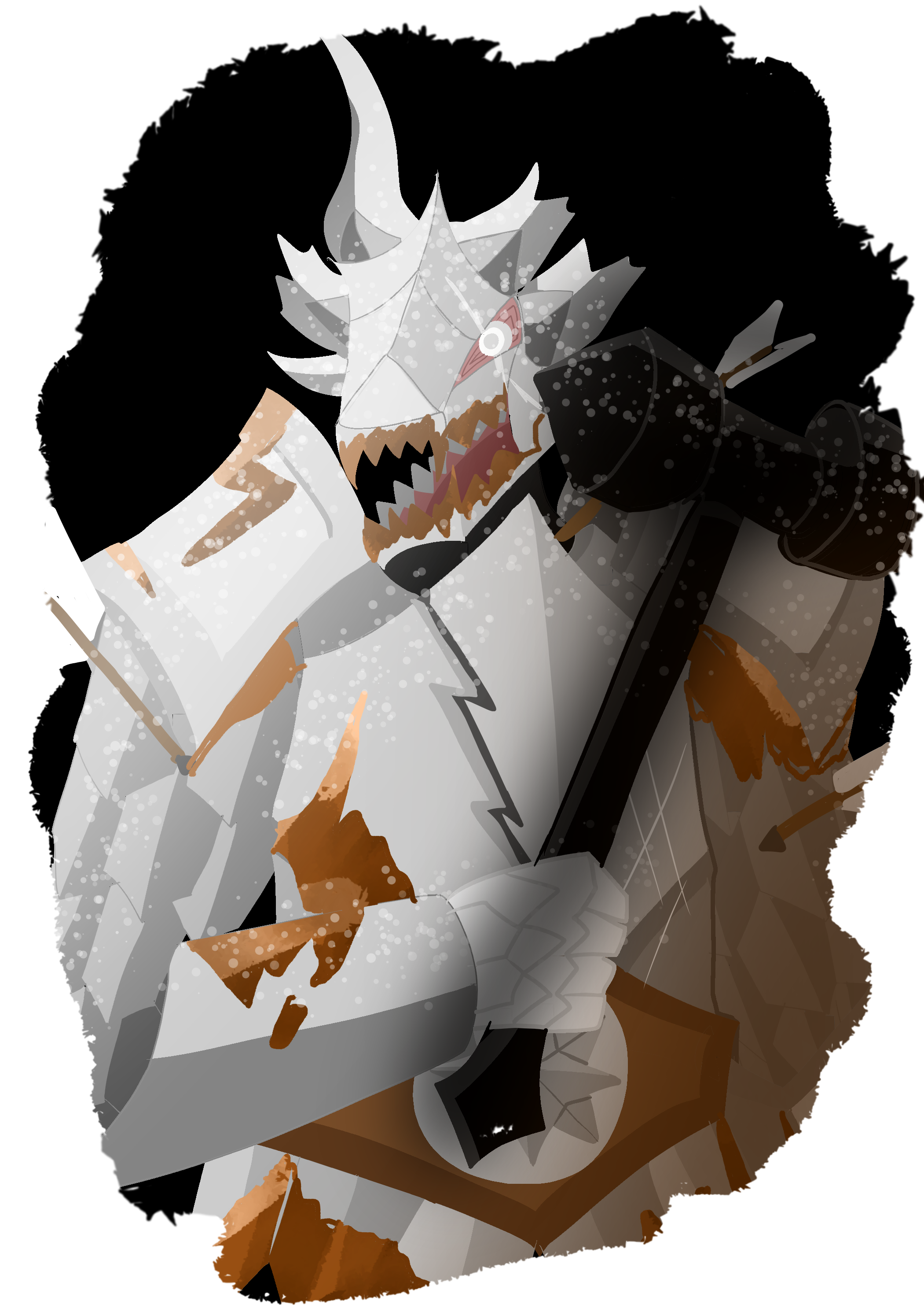 Black Basher. The Icicle Champion found this weapon during a campaign against an evil paladin who did not see herself as such. She harboured a great hatred for undead and tyranny, but engaged in brutal tyranny herself, all in the name of ‘protecting the innocent’. Regardless, the Icicle Champion used the tyrant paladin’s warhammer, the Black Basher, - a warhammer specifically made to kill undead - to slay the waves of undead attacking the town before he himself was felled. Now, he uses the Black Basher to murder the living, blinded by necrotic hate and scorn.