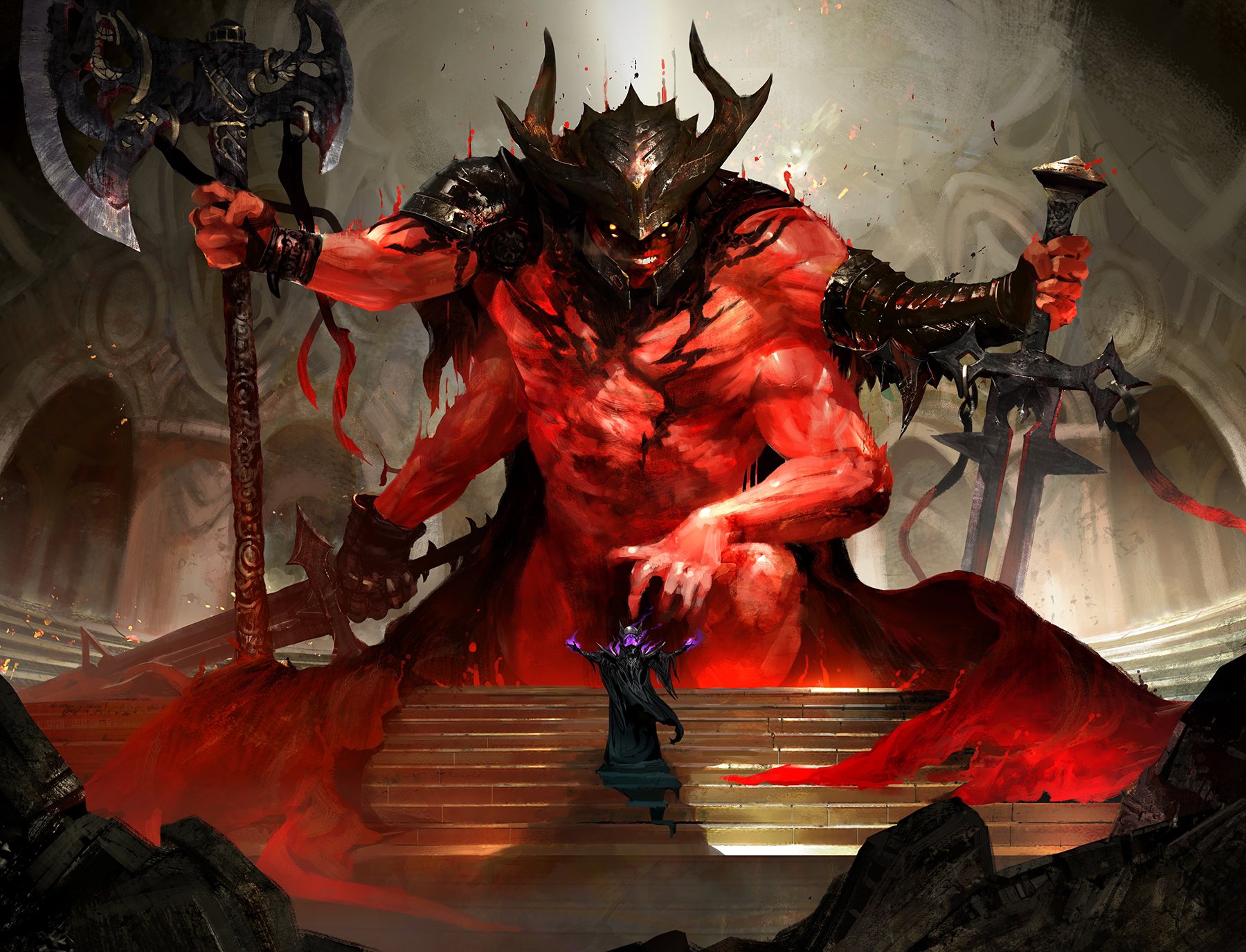 Multiattack. The legion devil can make four attacks: two with its Infernal Claymore and two with its Fell Greataxe.