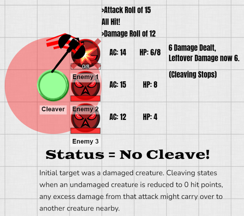 When a melee attack reduces an undamaged creature to 0 hit points, any excess damage from that attack might carry over to another creature nearby. The attacker targets another creature within reach and within 5 feet of the initial creature. If the original attack roll can hit it, apply any remaining damage from that attack to it.