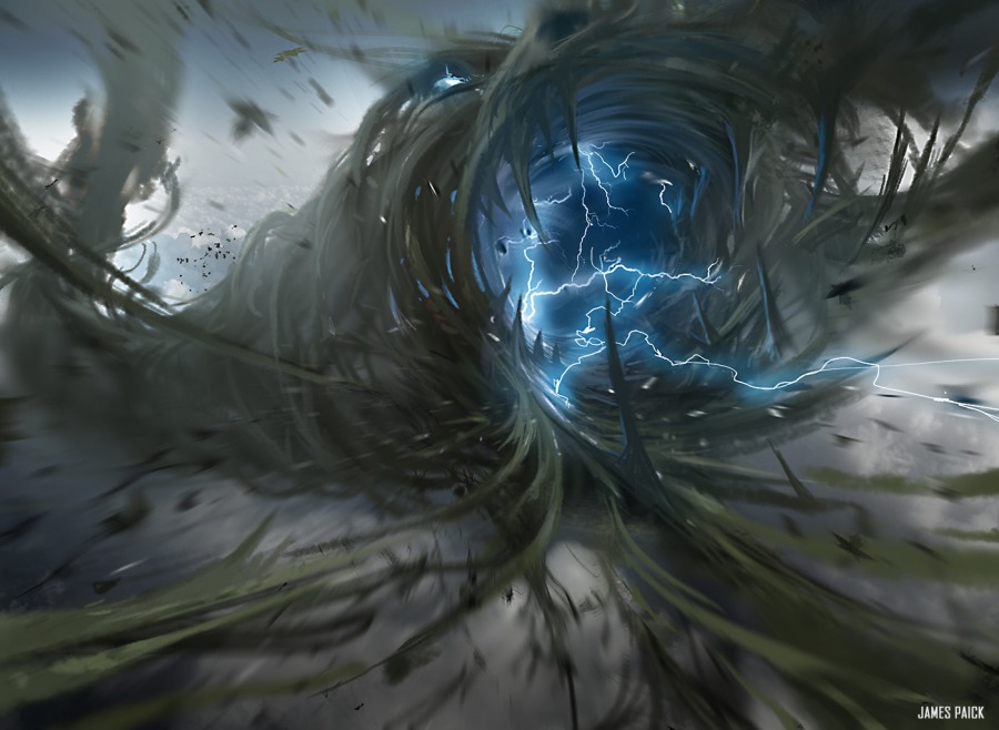 Thankfully, most nimbus primordials find their homes deep within the howling expanse of the Elemental Plane of Air where they can establish dominance over vast expanses of open skies with little interference from mortals. However, when they cross over into the Material Plane, whether by interplanar phenomena or arcane meddling, nimbus primordials can cause widespread destruction and loss. As they enter an alien environment, their first objective is to terraform the environment to one of their liking, which in its case is an eternal maelstrom or thunderstorm. As a result, the nearby area become shrouded in dark thunderclouds and shroud in perpetual rain and fog. To make matters worse, the nimbus primordial begins to open rifts within between the planes to allows elemental aether to accelerate the terraforming, as well as bring air elementals into the plane.