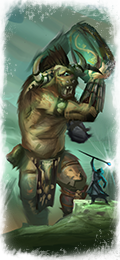 On the field of battle they will seek out those wielding the powers of magic as a shark drawn to blood. They carry with them the rune etched remnants of shattered waystones, temples and monoliths, for this is the only unifying material they can truly perceive. These boulder sized missiles are hurled into the ranks of the foe so they can close with their prey unhindered. The sheer size and ferocity of a Cygor is terrifying enough to mortal men, but those who know of their terrible hunger fear them above all. The mere presence of a Cygor is often enough to cause enemy wizards to foul the casting of their spells. To the mage a Cygor is unutterably fearsome, for he knows that of all the warriors on the field of battle it is him alone that the Cygor wants to catch up in its gnarled and calloused hands and lift them upwards to that hungry maw, his flesh it wants to tear apart, and his soul it must devour to slake its unending thirst.