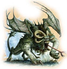 They have a thick, sticky proboscis like tongue that they can shoot out in the blink of an eye, capable of ensnaring and pulling a creature as large as a horse into the Jabberslythe's gaping mouth when it retracts. But the most horrendous of all the Jabberslythe's weapons is its vile appearance. The Jabberslythe is a creature so unsightly, a monster so disturbing to look upon, that an aura of madness surrounds it. There is something so unearthly and unsettling about these beasts that even to set eyes upon one is to go immediately and permanently insane. It is said that a Jabberslythe is so horrible to view, that even clear pools of water will not offer up a reflection. Those that look upon a Jabberslythe for too long find themselves clawing at their own eyes, crawling in tight circles, babbling nonsense rhymes in a gibberish tongue, shrieking with manic laughter, or even gutting themselves with their own weapons in their desperation to escape the nightmarish vision that has seared itself into their brains, forever haunting them.