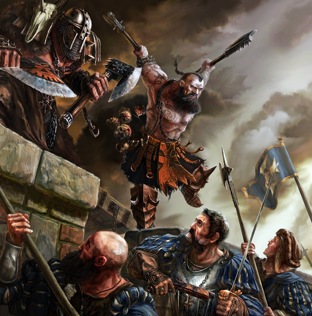 Ever since then, the shadow of Chaos has spread far into the northern lands of the World. Those Human tribes that cling to its borders were soon corrupted by its influence. Some of these tribes tried to fight back against the darkness, for no sane Human being would so willingly give up their souls to damnation. However, the honeyed whispers of the Dark Gods swayed them to their service and destroyed those that still did not bend to their will. In time, the northern people of the Hung, Kurgan and Norse were all swayed into eternal damnation.