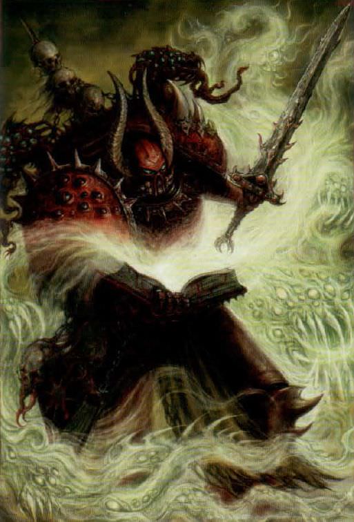 In this new form, he was a terrible force. He stood at the heads of his legions, destroying any and all who crossed his path, attracting mortals from all over to join his legions. In time, he was worshipped as a God. But, as his power and influence grew, so too did his pride. It was in his arrogance and his belief that he was an equal to the Greater Gods that spelled his downfall. The Four Powers cast him low, and Tzeentch, the Changer of Ways, cursed him, transforming him from a demigod to a confused and crazed spirit that would ever after exemplify Chaos. He became the Harbinger, He Who Crowns Conquerors. He would never champion the cause of Chaos. He would for all time be a servant and thrall to those mortals who attracted the attention of the Ruinous Powers.