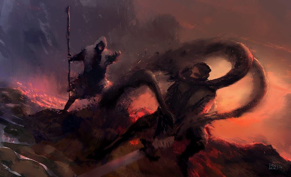 The two warriors traded earth shattering blows in an intricate waltz of destruction, strikes that could have annihilated any mortal man dozens of times over. Two destinies at war, the skeins of fate straining to control their struggle as the rest of the battle simply faded into the background, where heroes lived and died in their dozens. Yet here was the only contest that mattered. The future of all creation would be decided, either by the Slayer of Kings or the Splitter of Skulls.