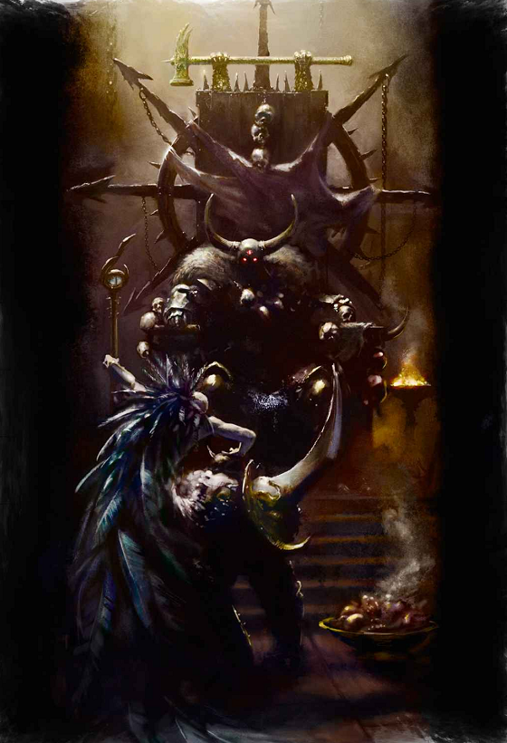 The Norse tribes living within the frigid lands of Norsca are each ruled by a King, who distributes hunting grounds and territory to his lords, who are known as Jarls. The Jarls in turn bestow gifts and favor upon their sworn warriors, who are known as Bondsmen. Warriors occupy the most vaunted and esteemed place in Norse society, due to the warlike nature of the Northern tribes and their insatiable lust for glory and battle. The rest of Norscan society consists of the elderly, the infirm and the women. At the very bottom rung of Norscan society lies the Thralls, slaves taken in raids for use as menial labor, as consorts, and worse, as sacrifices to appease the dark hunger of the Chaos Gods. Kurgan and Hung tribal society also follow a similar form of hierarchy, but instead of Kings and Jarls, these Barbarians are lead by powerful Chieftains known as Zars, perhaps in imitation of the Tzars of Kislev.
