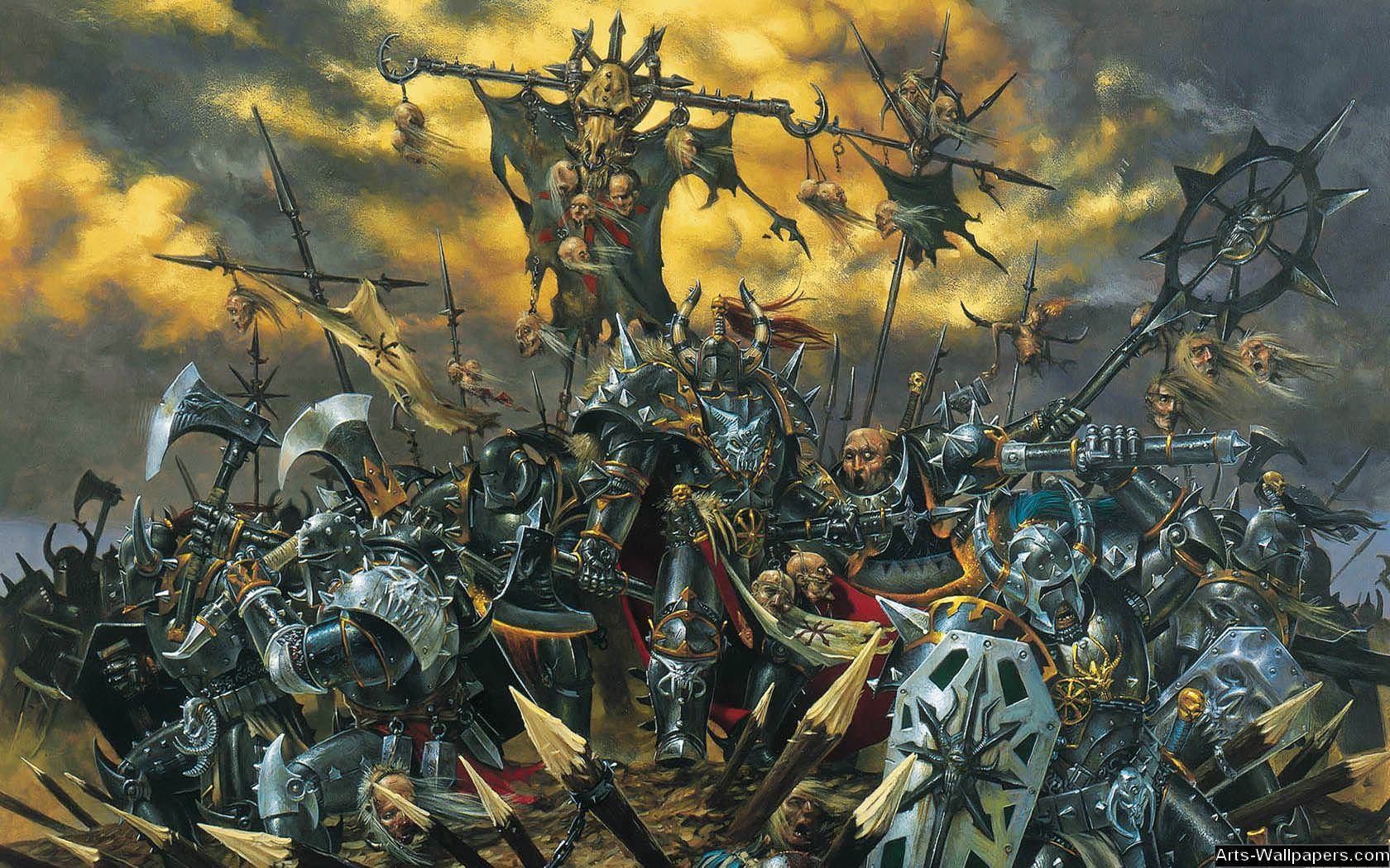 Humans and Chaos. The race of Mankind is a paradox upon the World, for although they are considered the world's greatest defenders against the darkness that is Chaos, they are nevertheless also one of Chaos's greatest and most numerous servants. The corruption of Chaos runs deep within the blood of Men, and its influence upon Human history has literally shaped the founding of entire Nations. From the Northern Waste, armies of the Dark Gods would attack the southern lands time and again, slaughtering without reason, pillaging that which is not nailed down, and just simply wrecking wanton destruction to the nations of the Old World. No matter how many of these marauders are killed, no matter how many invasions are pushed back and enemy armies annihilated, the Hordes of Chaos can never truly be defeated, and after a few years of relative peace, they shall once more come down south and begin the vicious cycle once again. So long as there is still Chaos within this world, there will also be those evil and greedy men that are wholly willing to serve them.
