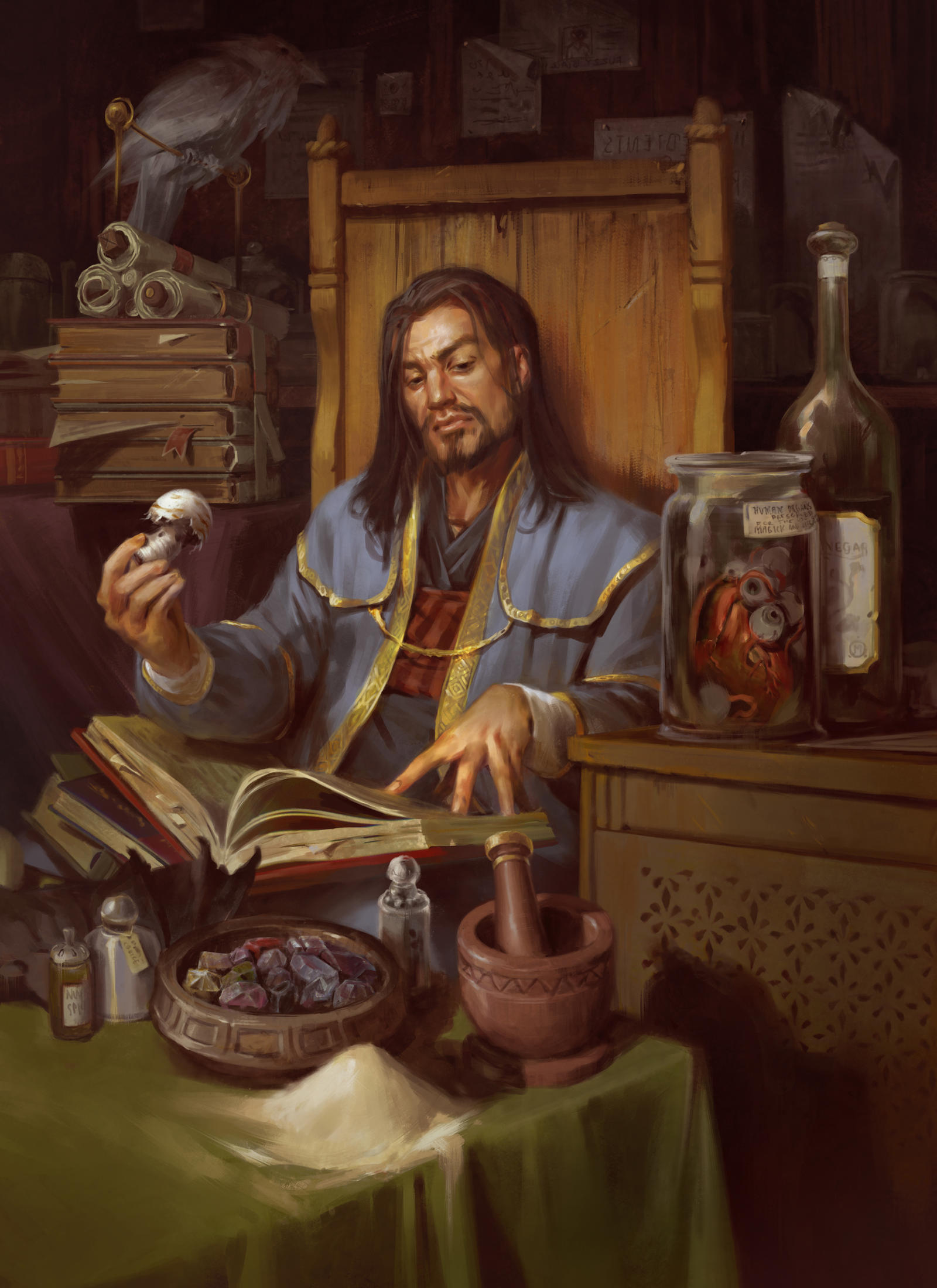 When creating your alchemist, the first question to consider is how you began to learn alchemy. Did you have a mentor who set you on your alchemical journey? Did you become fascinated with the local flora and fauna of your home and began to experiment with their magical properties? Maybe you loved to create explosive and fiery concoctions, and searched ways to make the explosions bigger and brighter?
