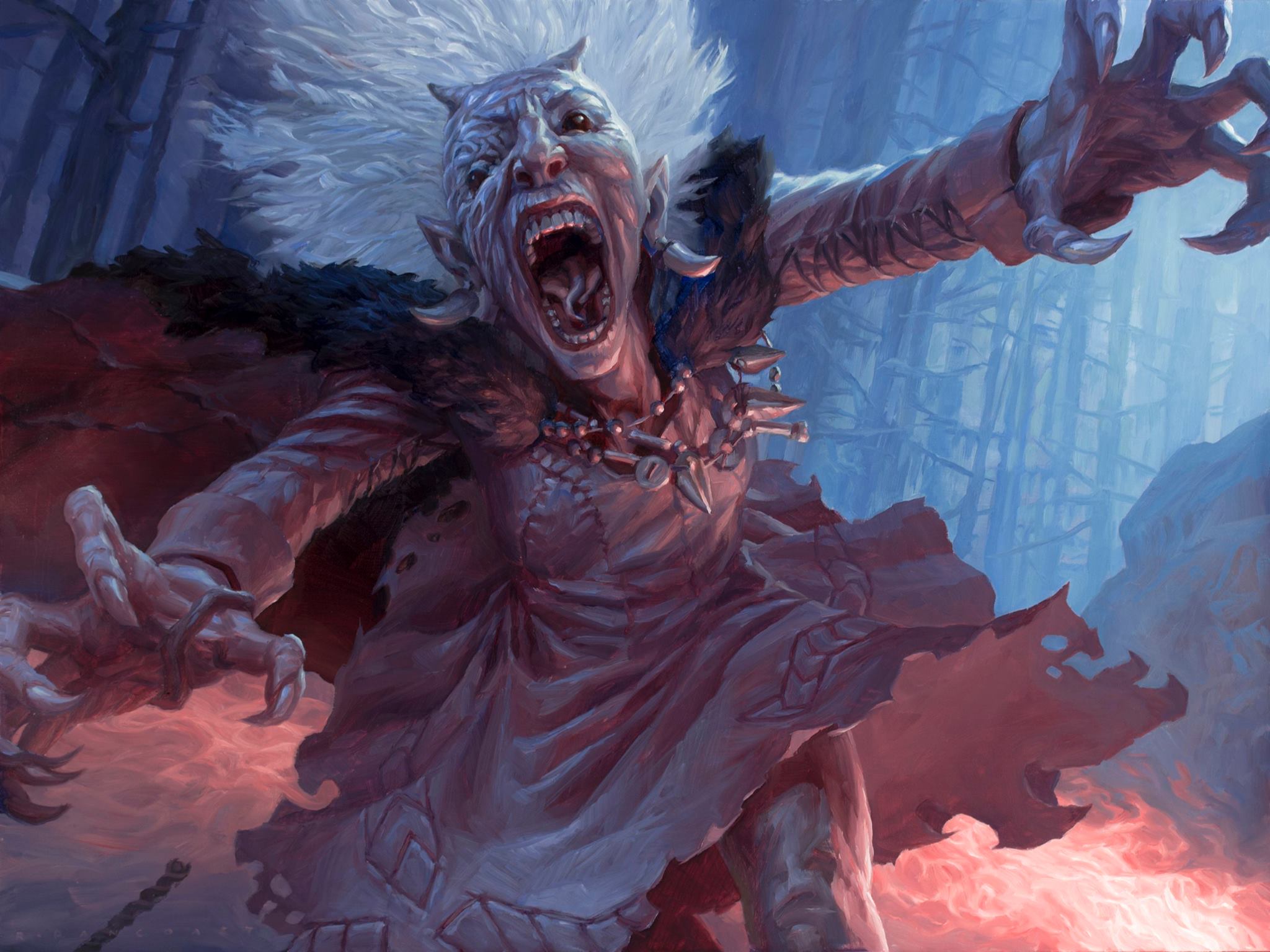 Despite their primitive nature, flesh hags are considered to be even more dangerous than other hags because of their appetite for human flesh. These hags are notorious for forming small covens dedicated to hunting humanoids and will sneak into humanoid settlements under the cover of night to carry off their victims.