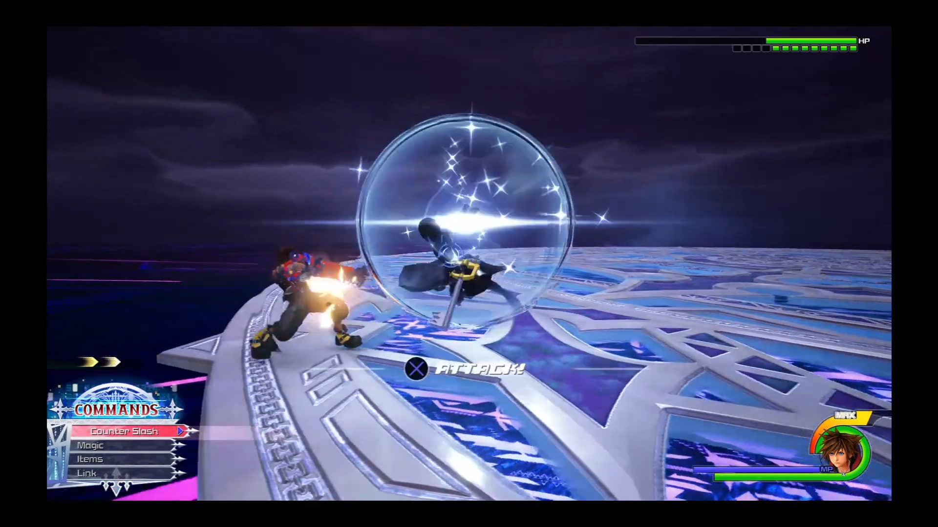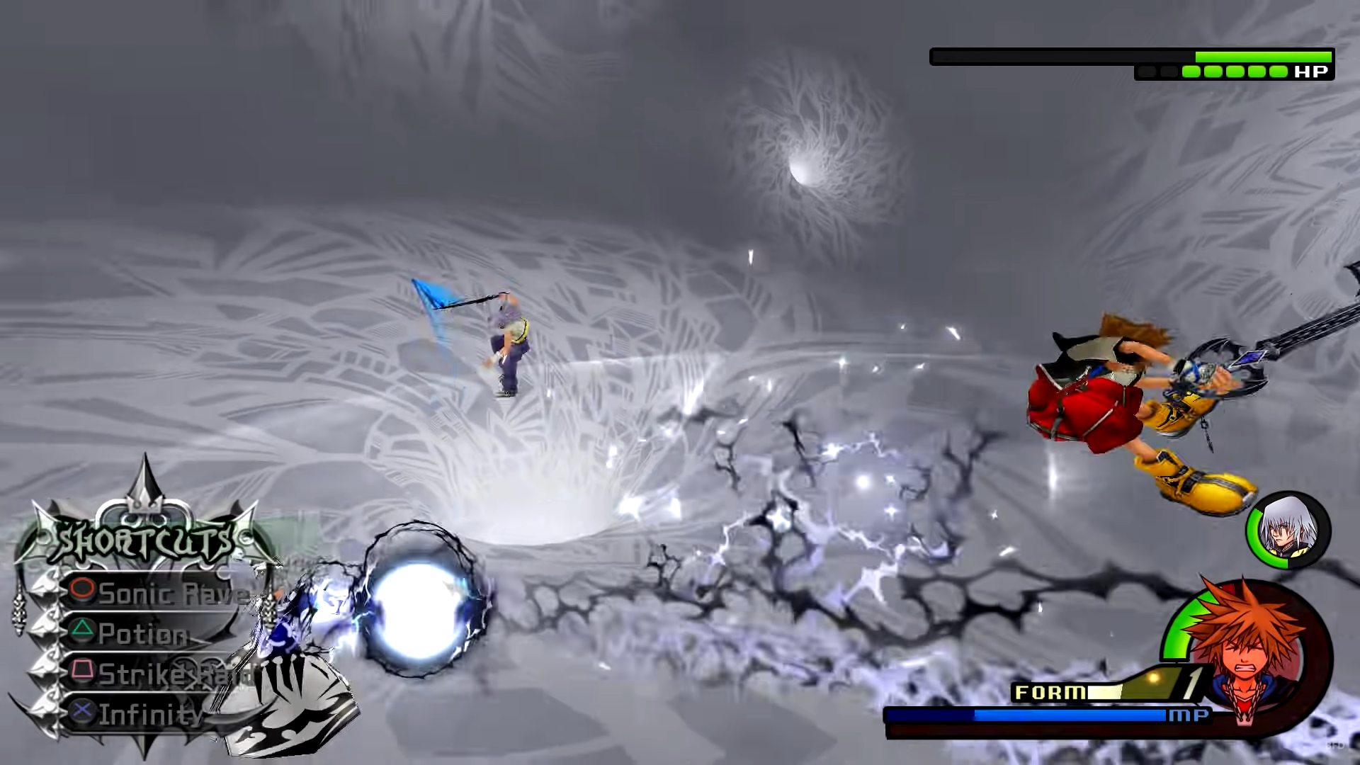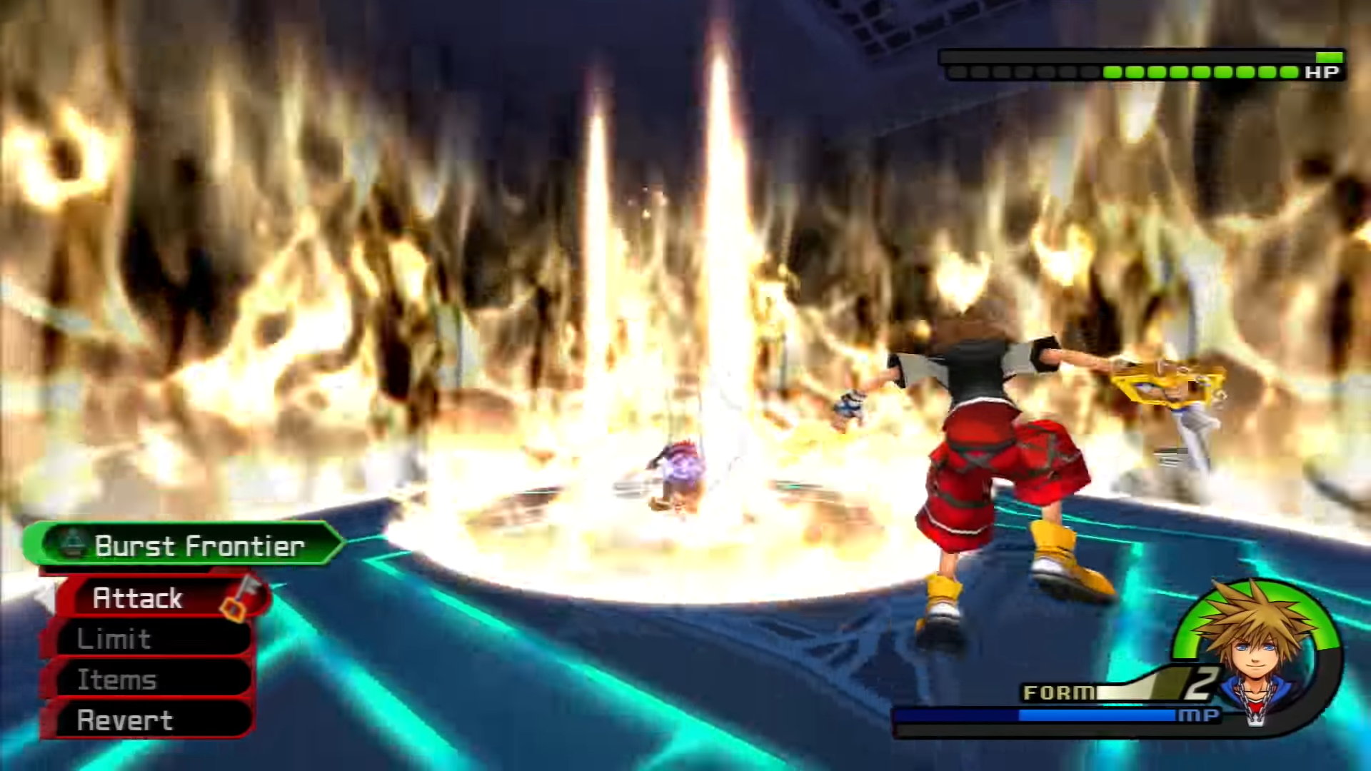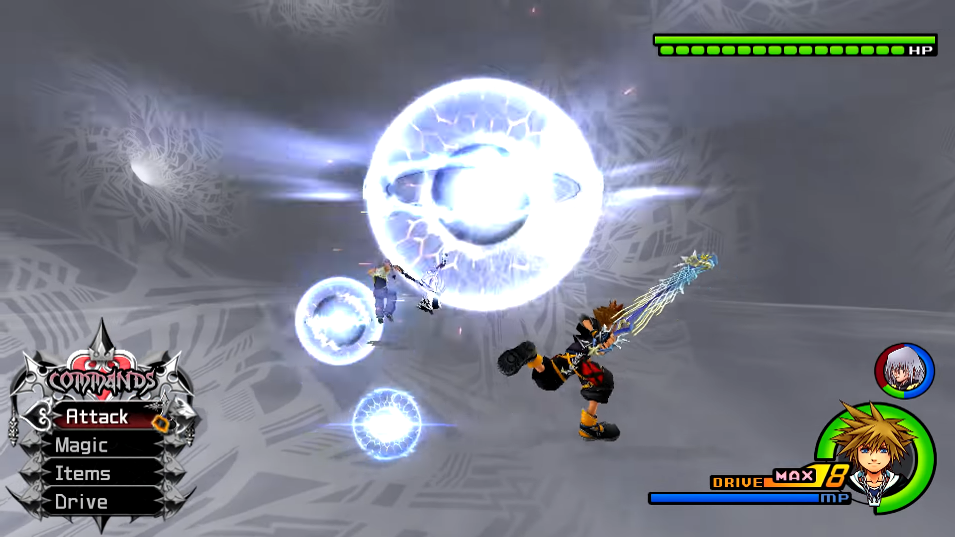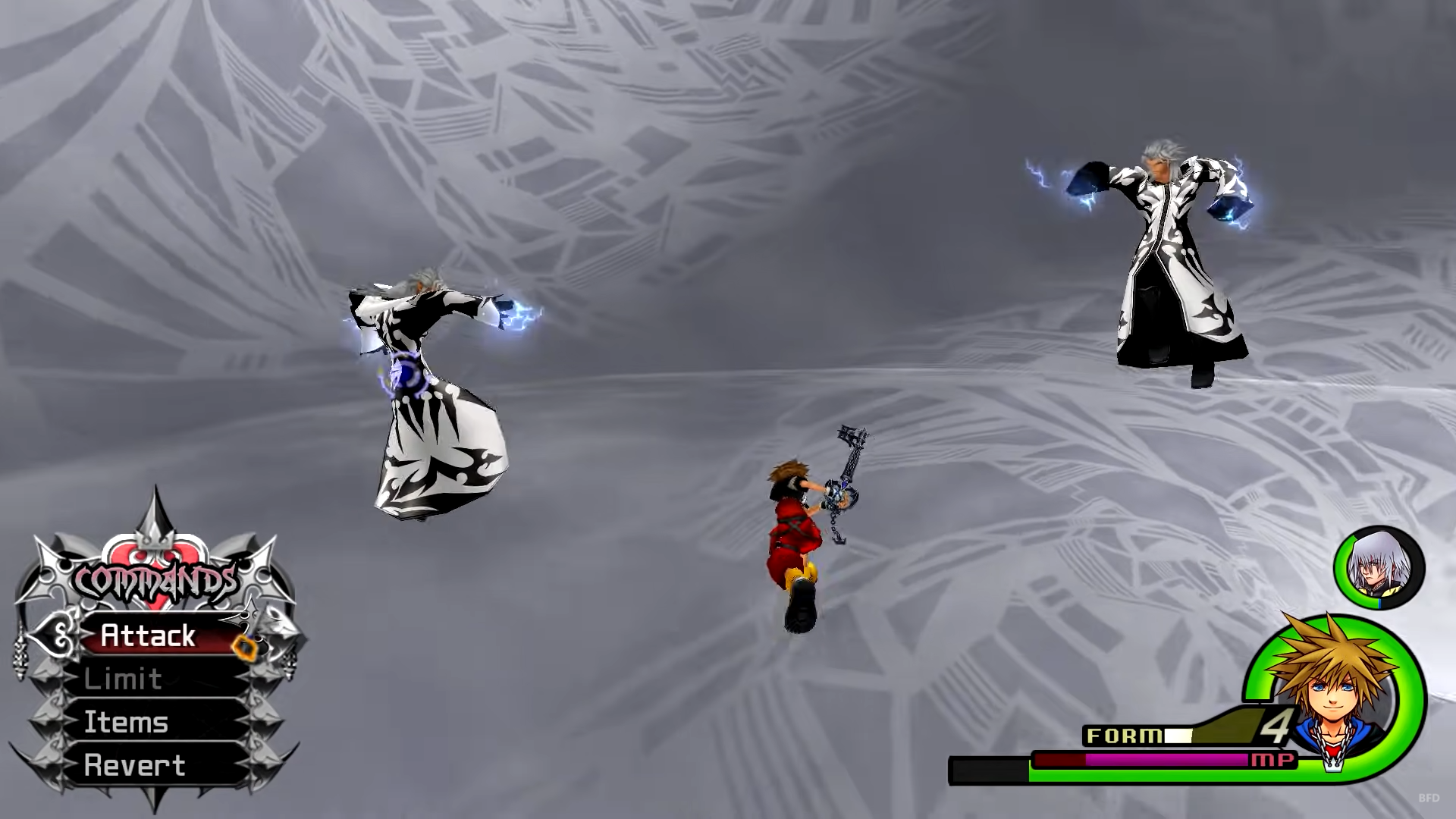 Multiattack Roxas makes three Key Blade attacks, uses Scattering Lights, and then uses Shockwave Thrust.