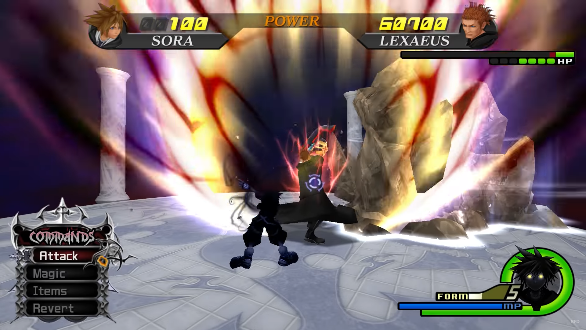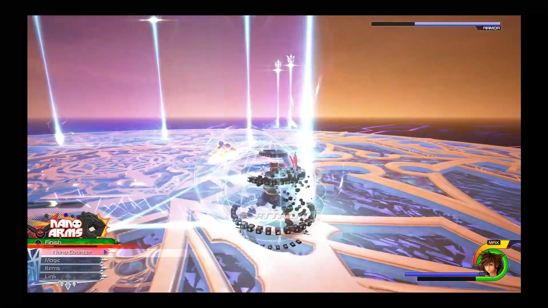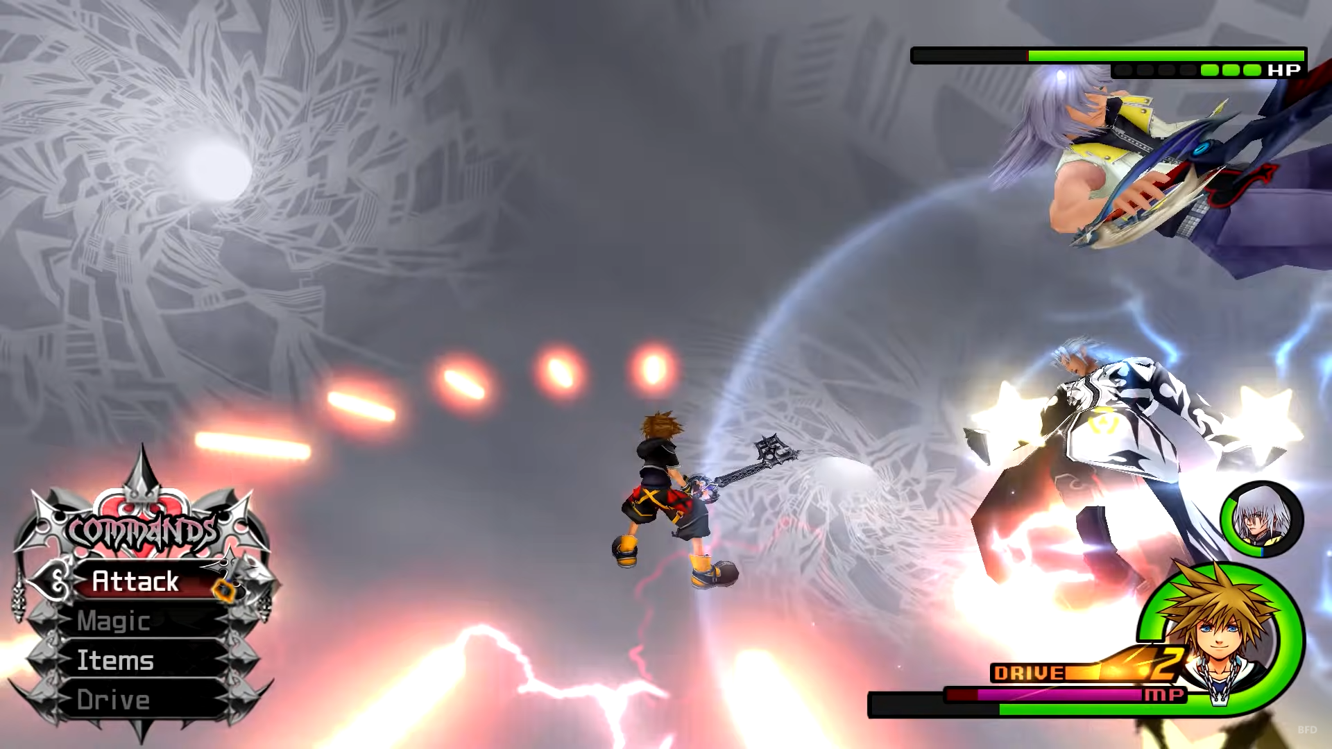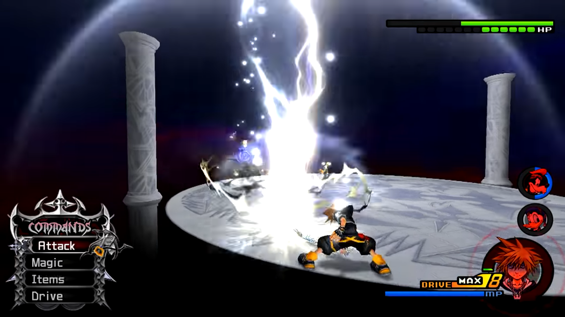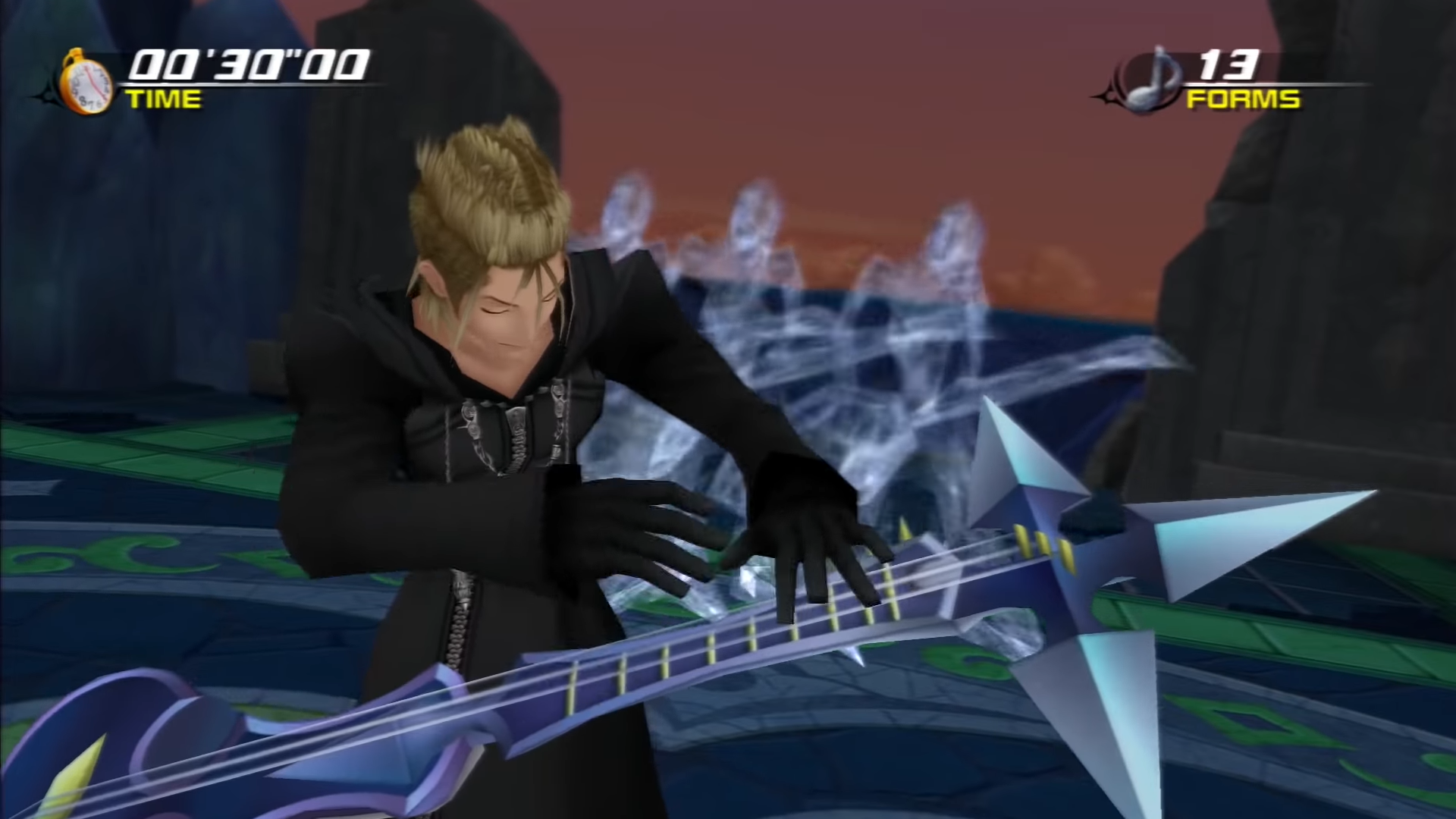 Multiattack Roxas makes three Key Blade attacks, uses Scattering Lights, and then uses Shockwave Thrust.