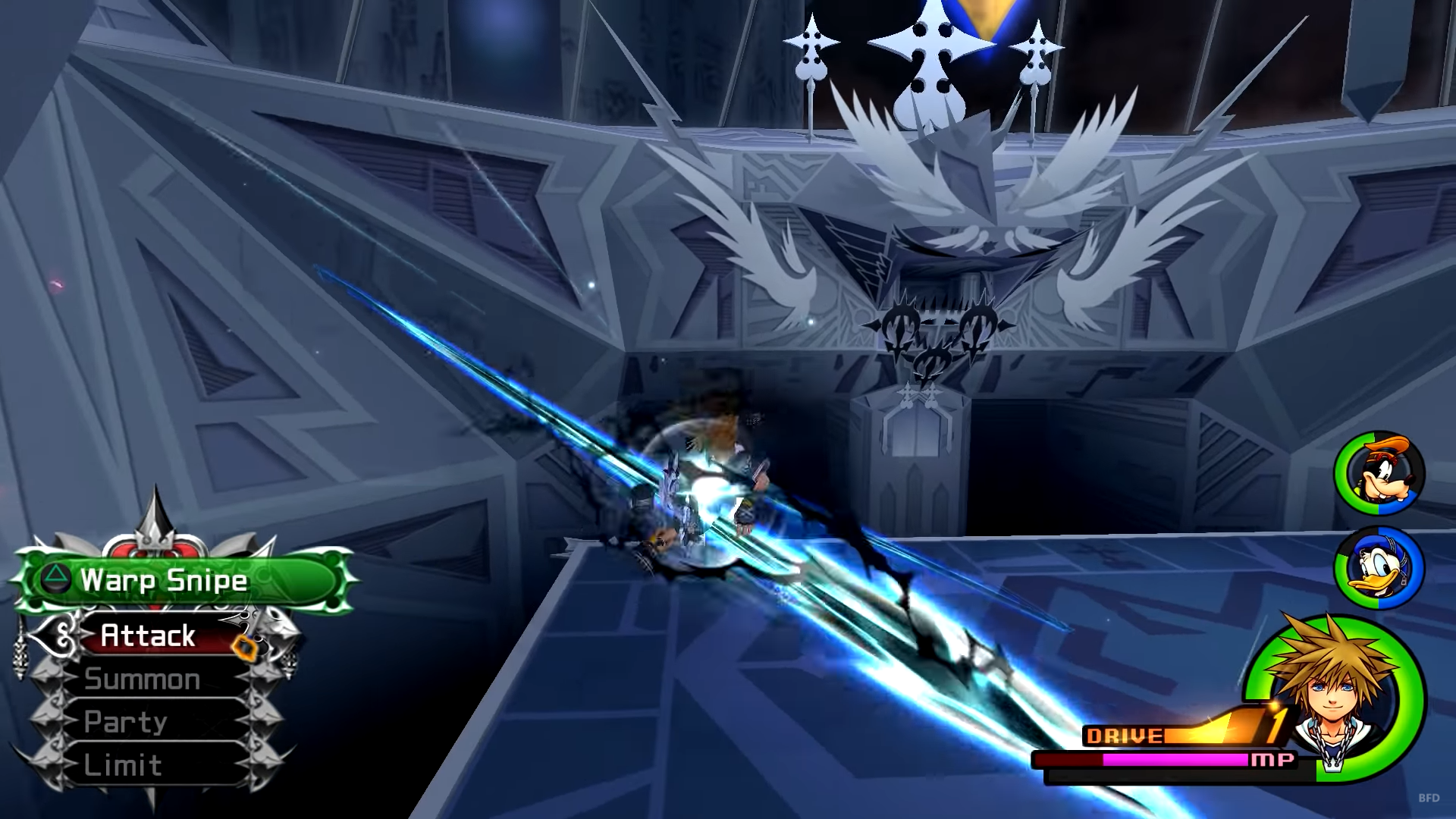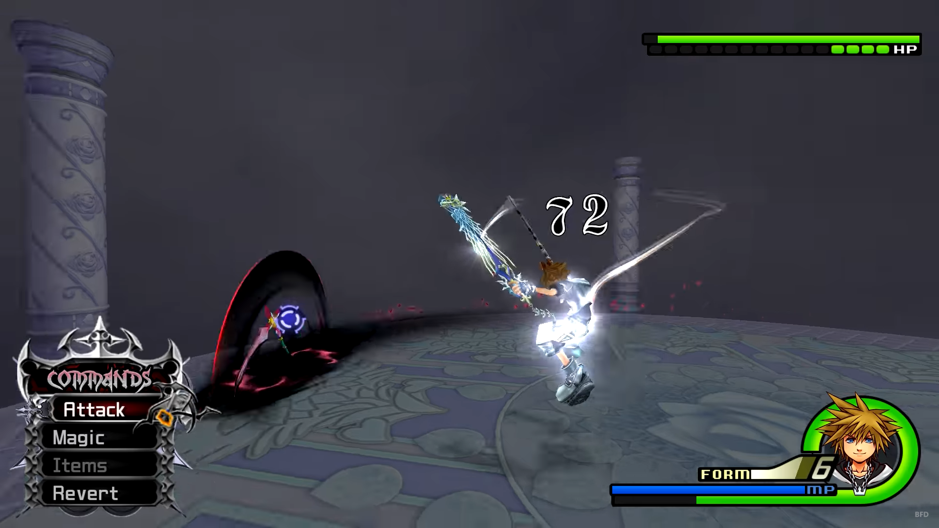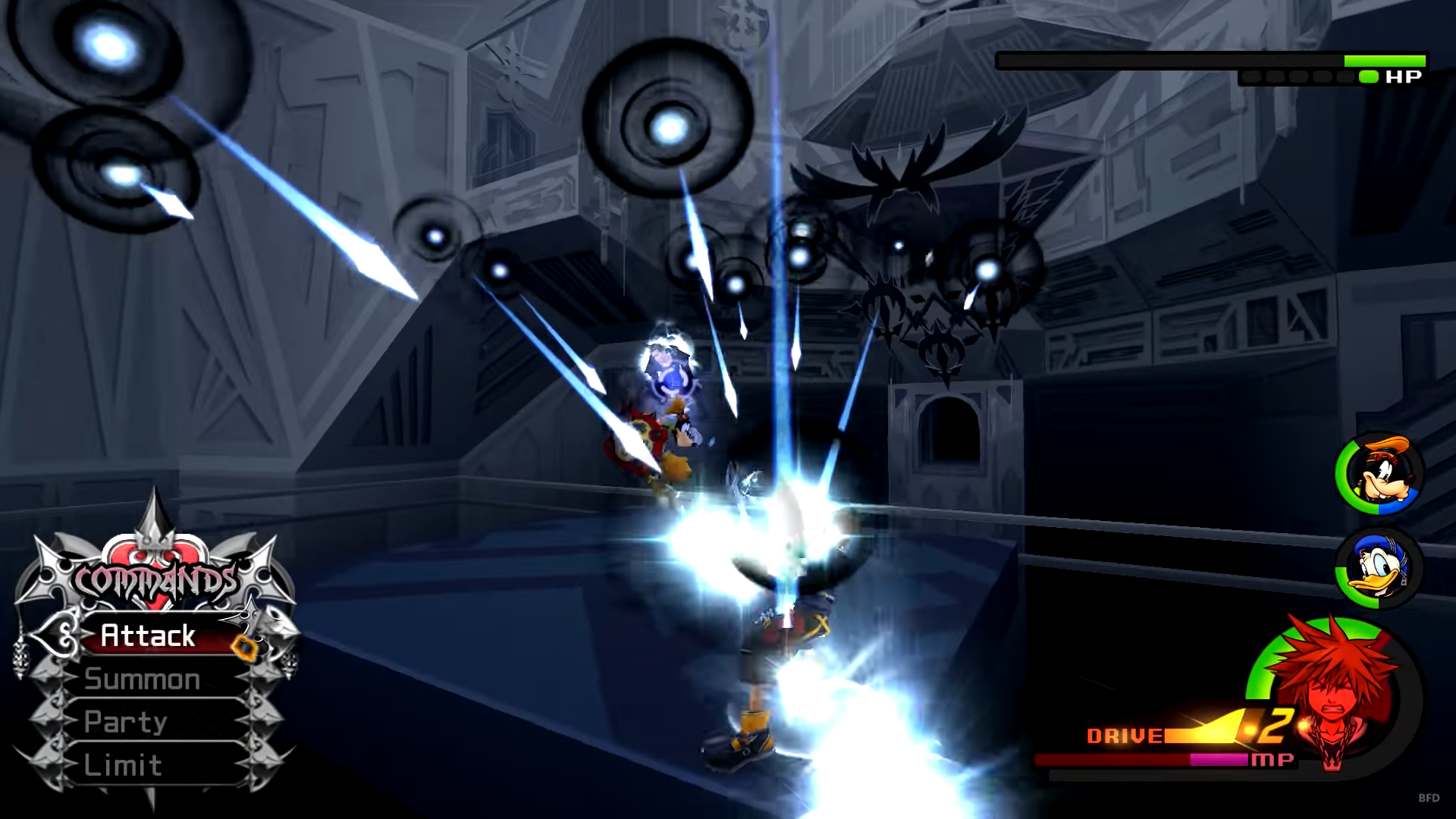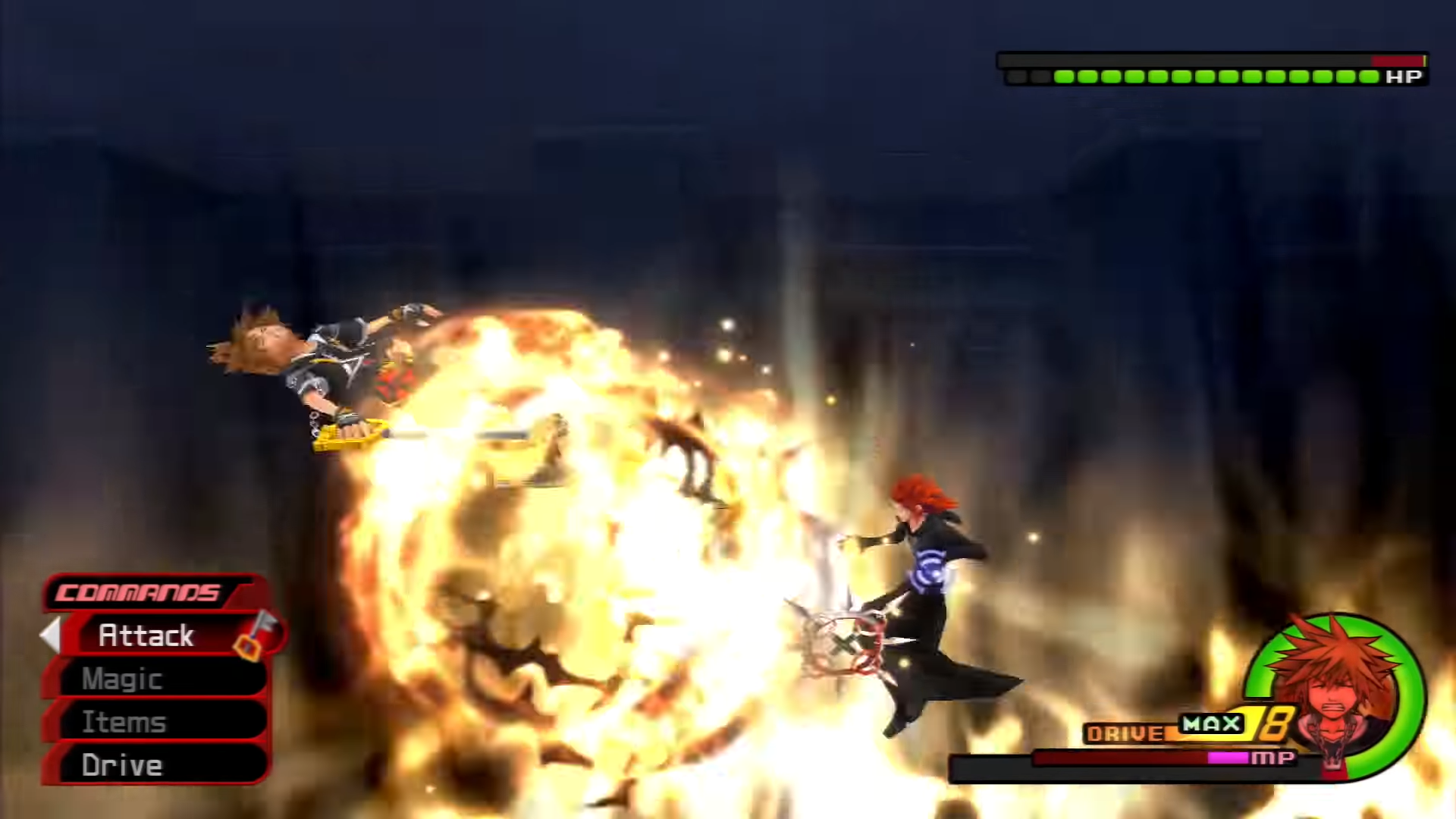 Multiattack Roxas makes three Key Blade attacks, uses Scattering Lights, and then uses Shockwave Thrust.