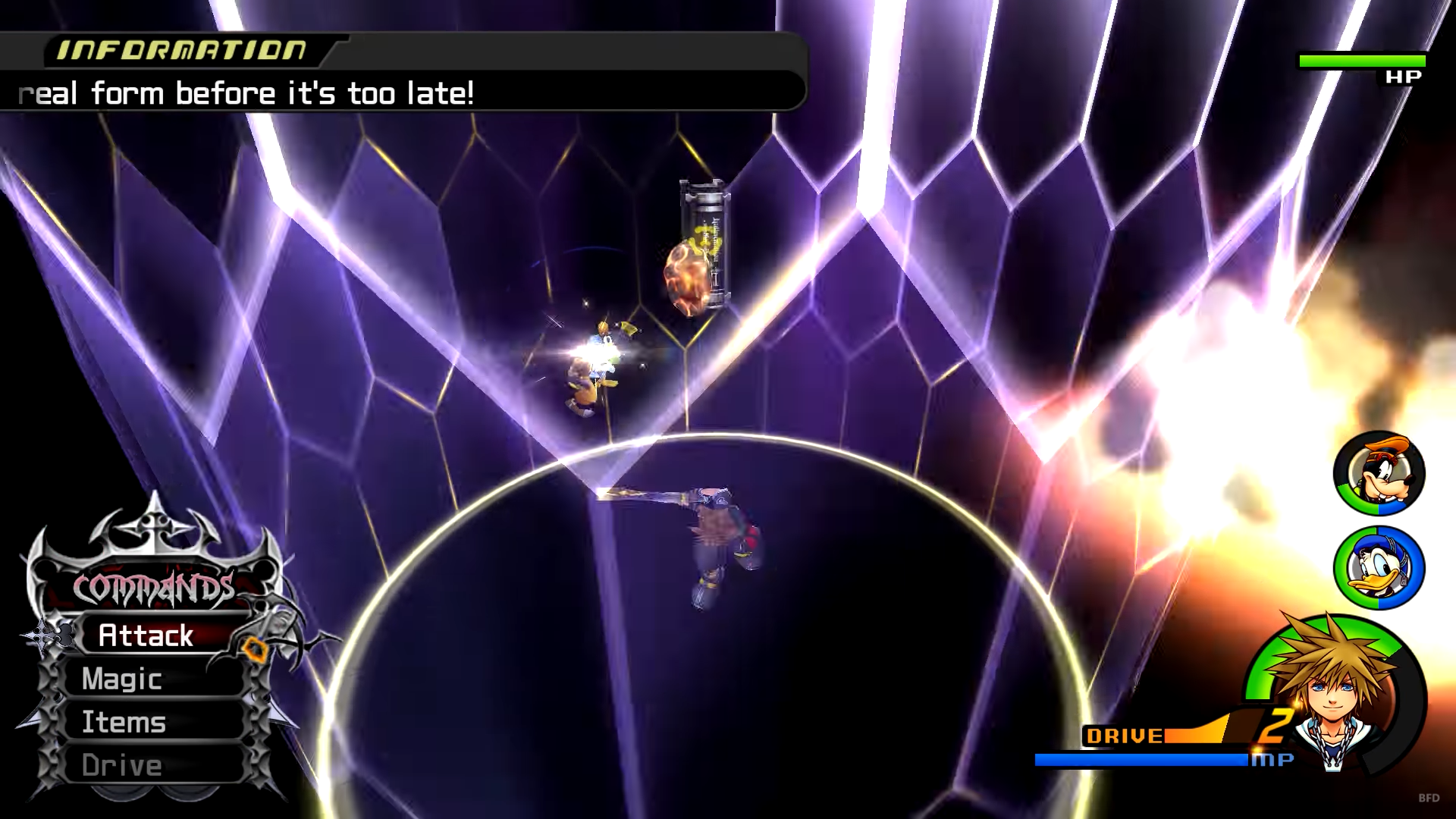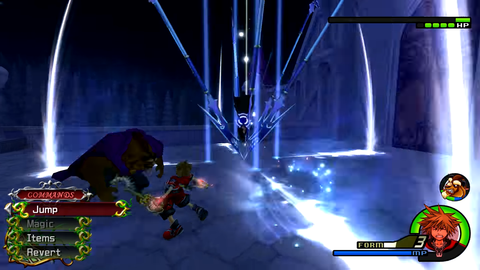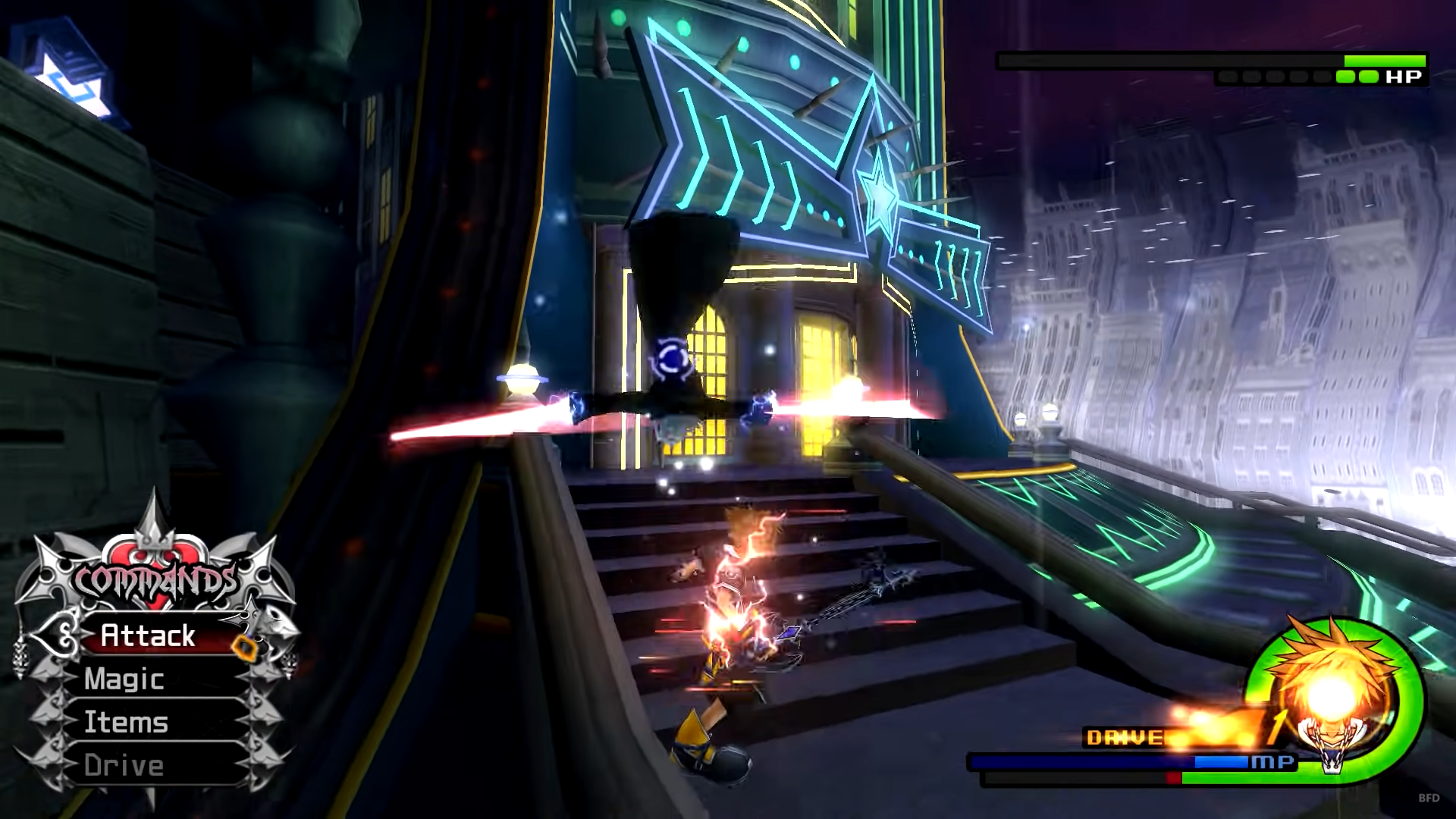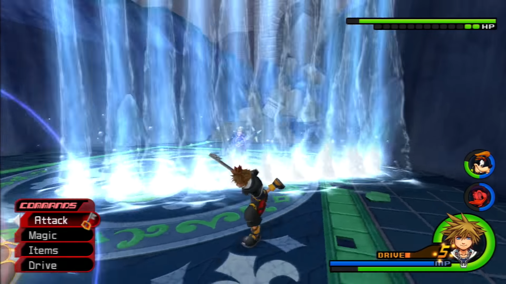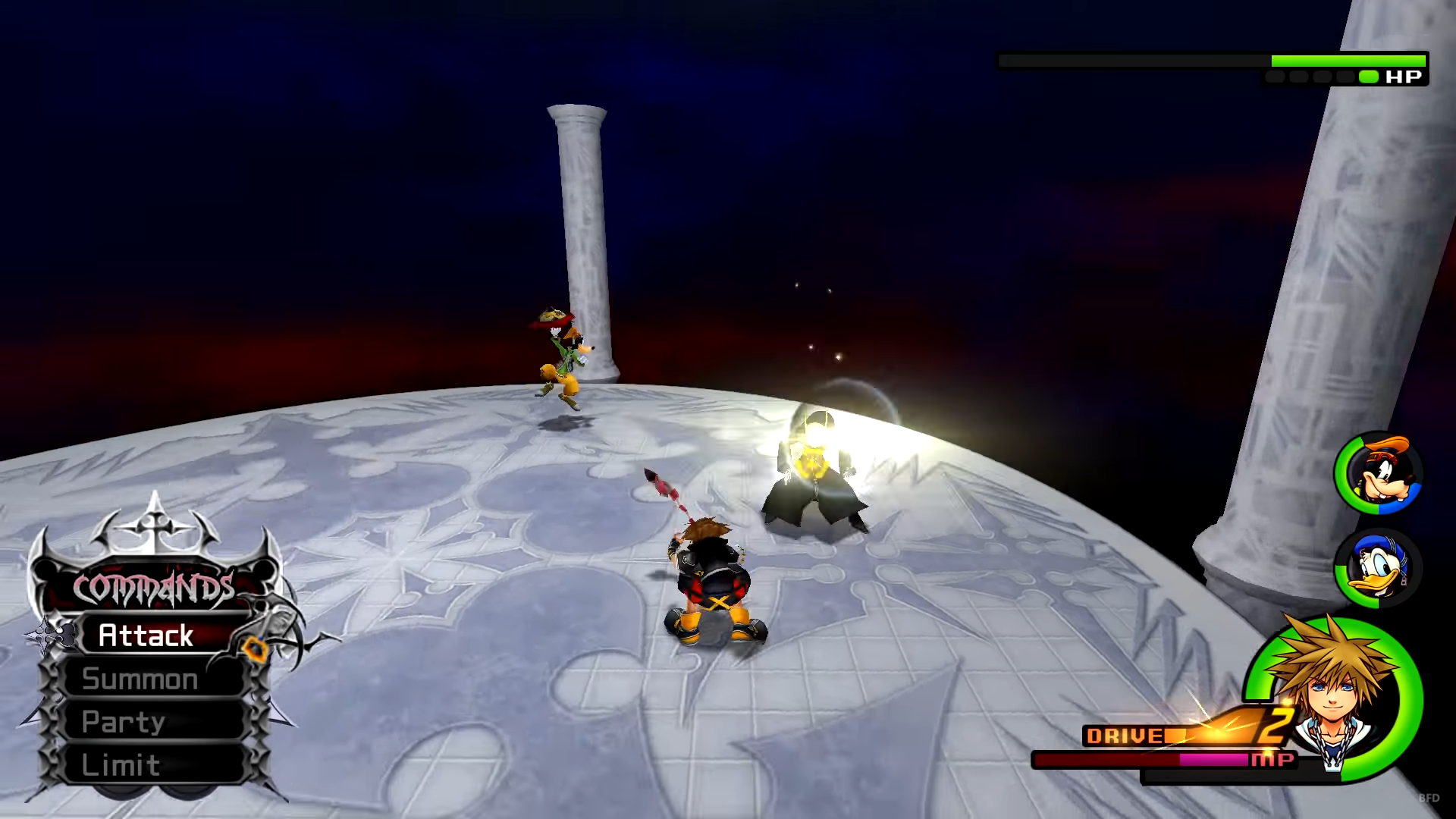 Multiattack Roxas makes three Key Blade attacks, uses Scattering Lights, and then uses Shockwave Thrust.