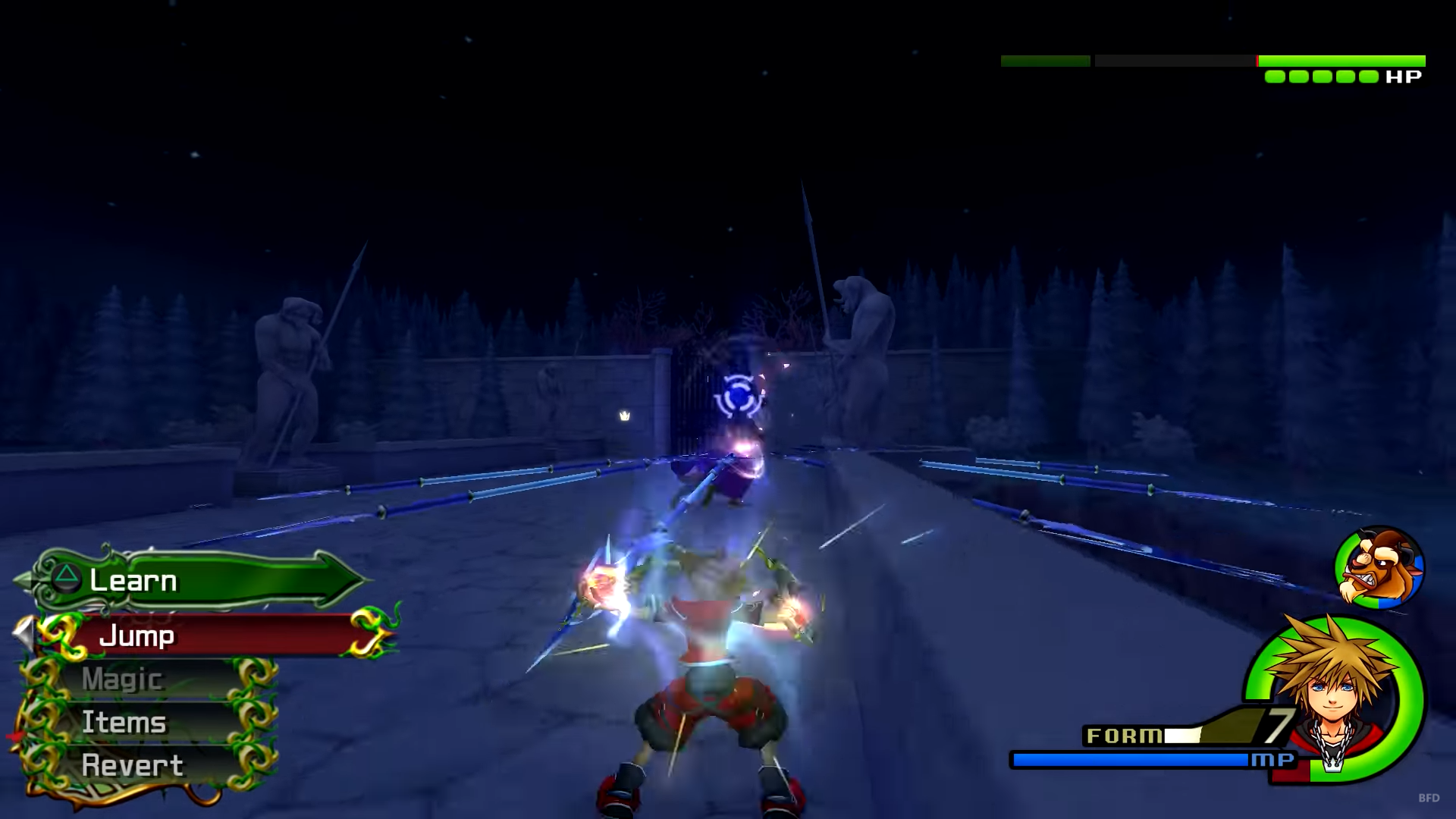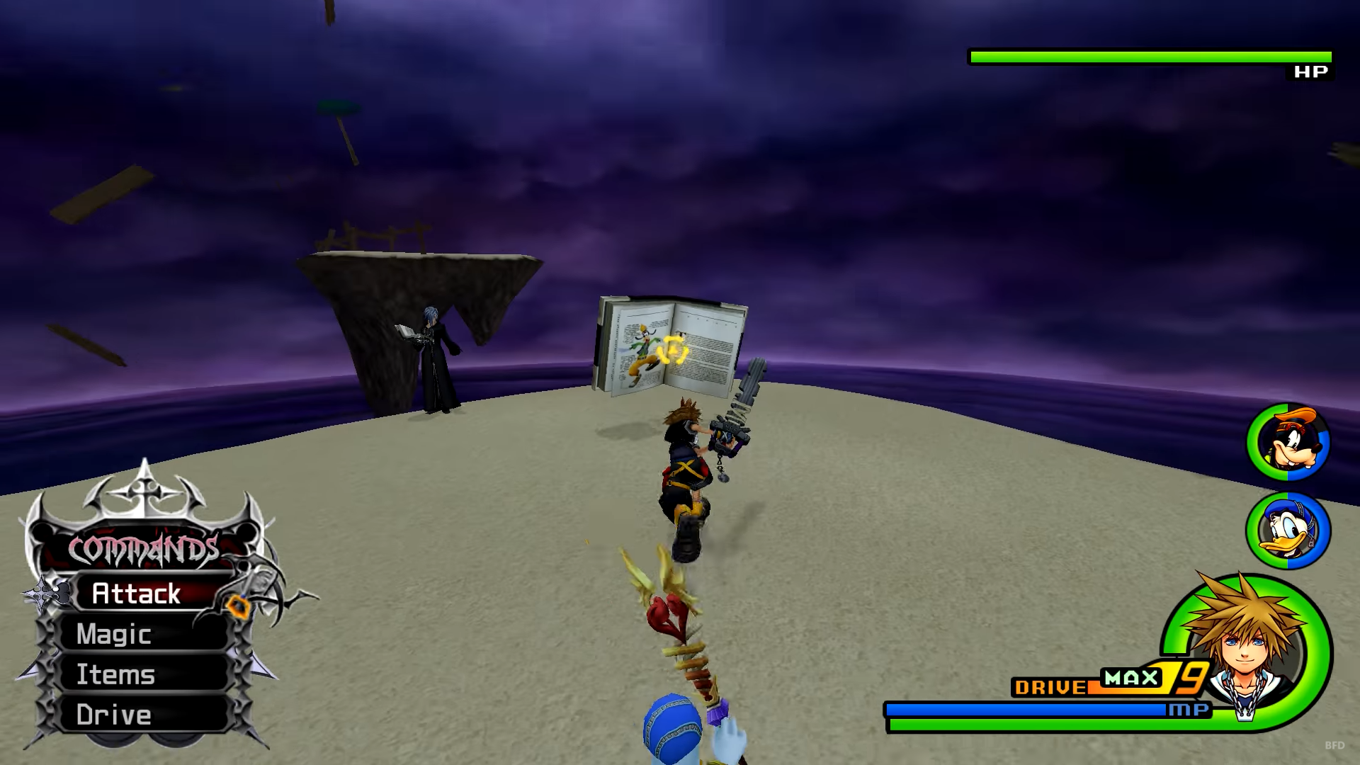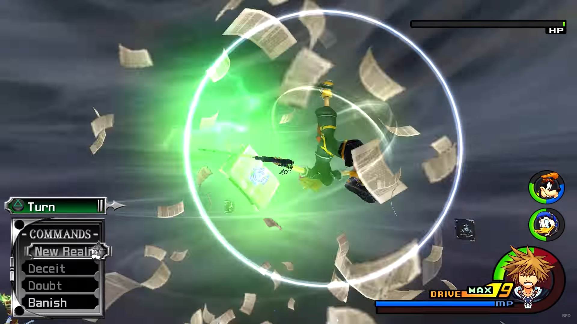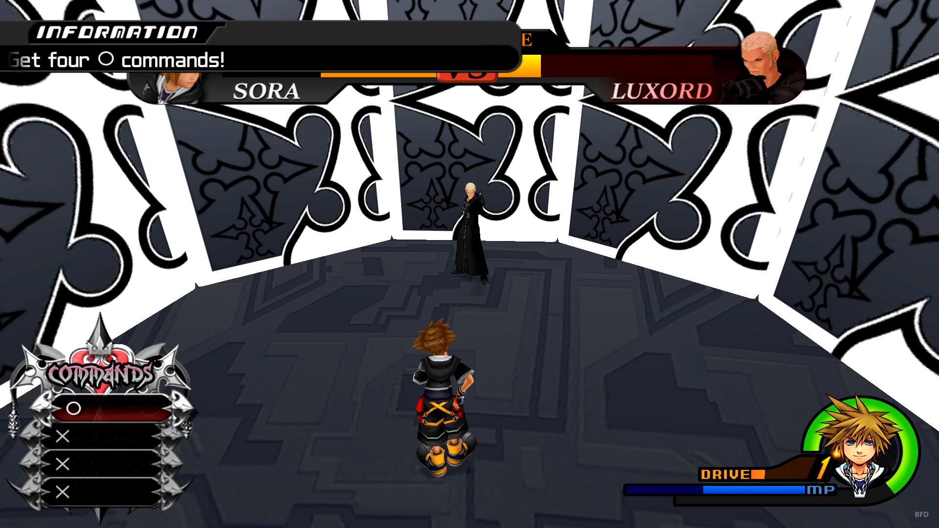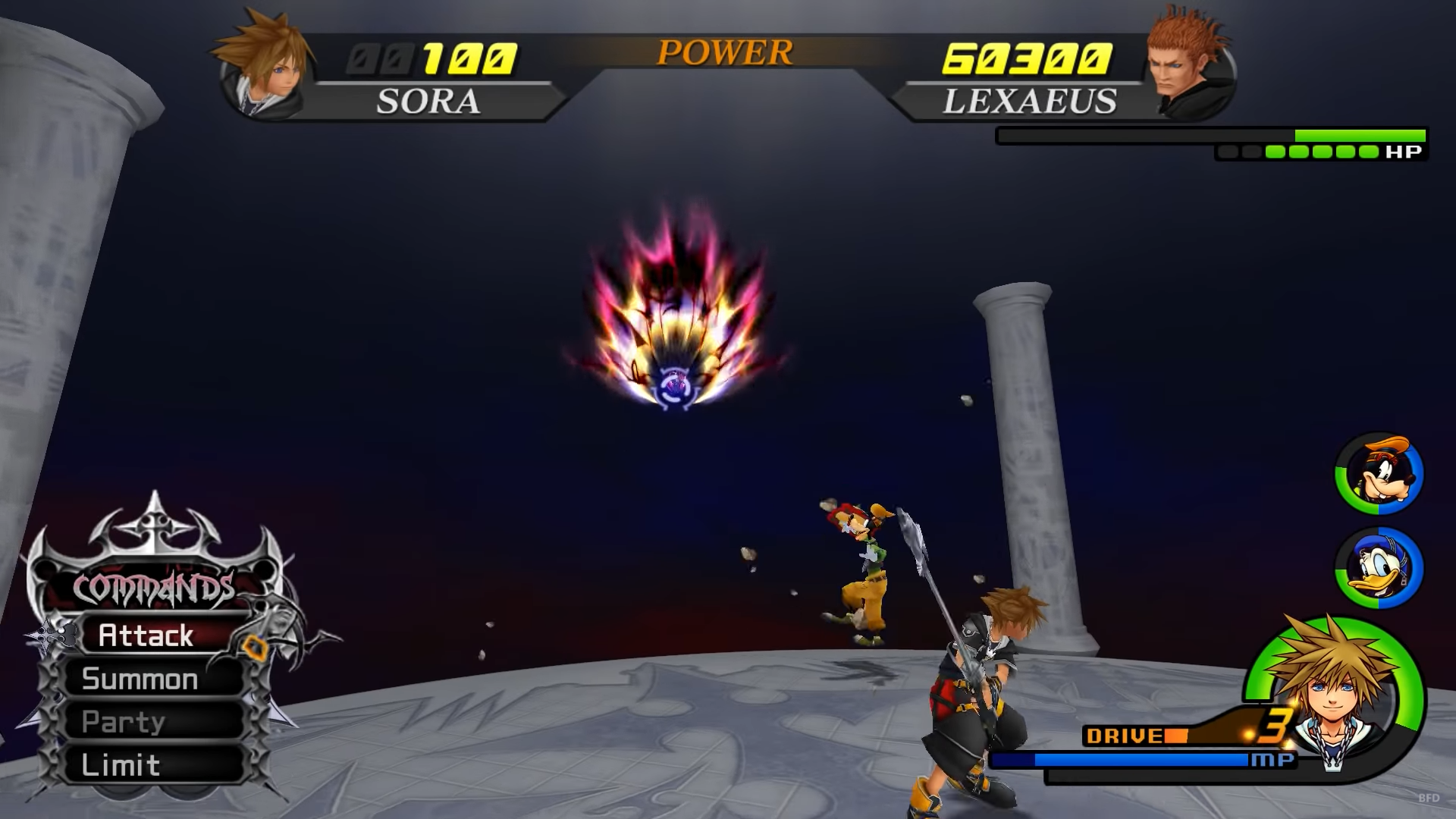 Multiattack Roxas makes three Key Blade attacks, uses Scattering Lights, and then uses Shockwave Thrust.