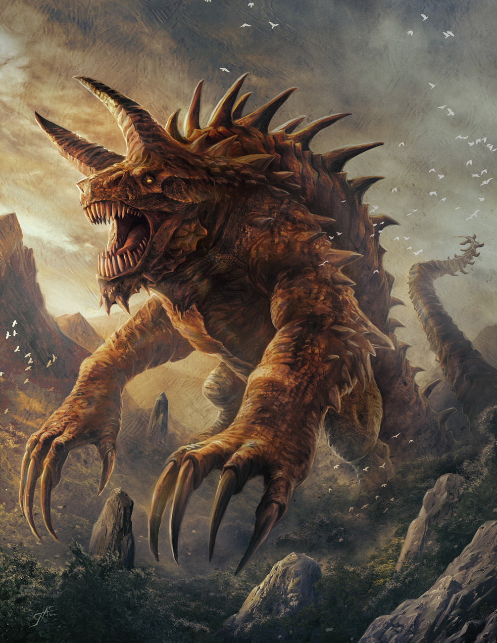 Коготь. Рукопашная атака оружием: +25 к попаданию, досягаемость 20 фт., одна цель. Попадание: Рубящий урон 33 (4d8 + 15).