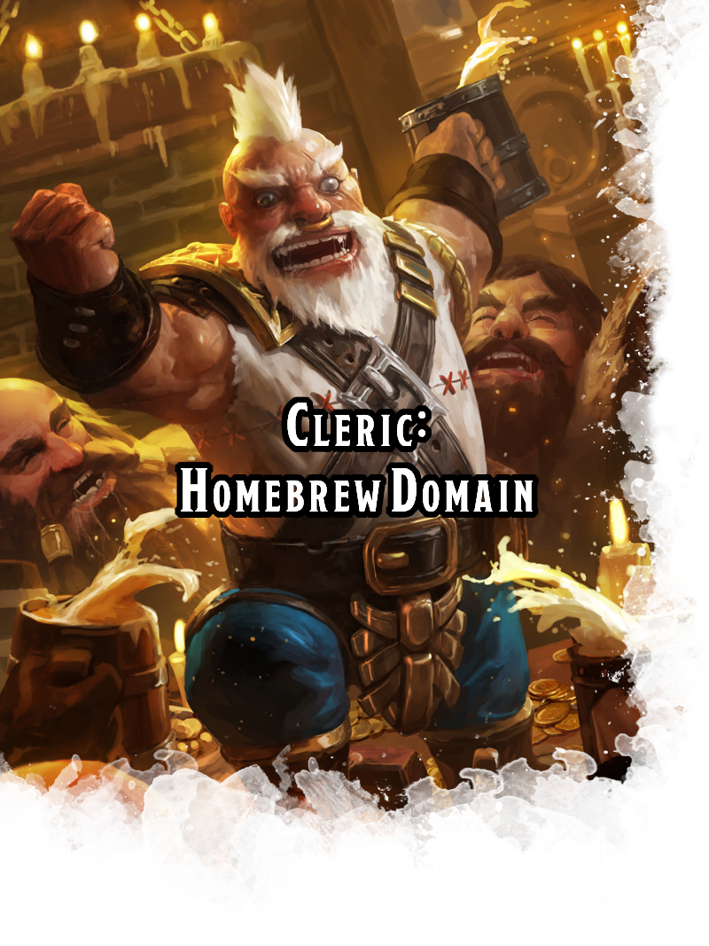 Clerics of this domain enjoy a good drink and sharing with others, generally following gods that enjoy parties, benders, and fun times with friends like Dionysus, Hanseath, and Bud, the God of Light and Light Beer.