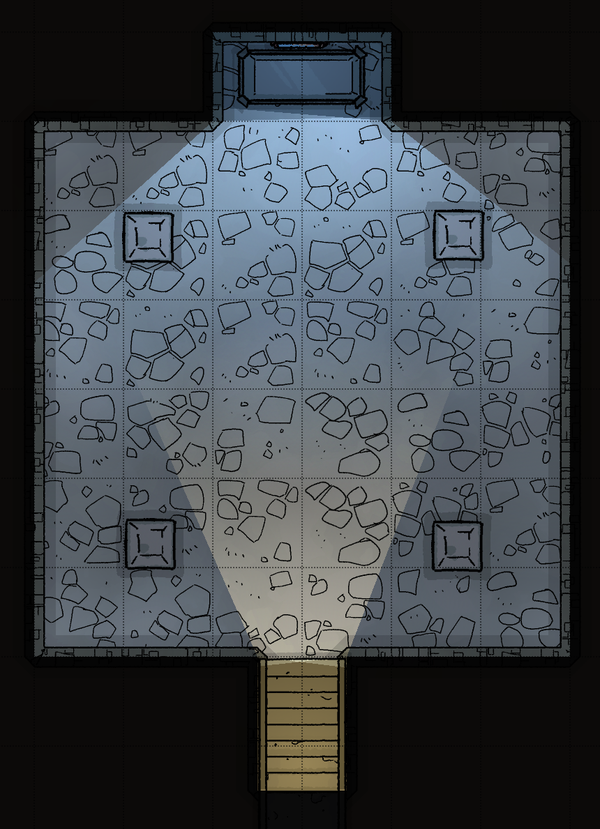 This path slopes downwards, first slowly then dramatically. Creatures entering this tunnel must make a DC 15 Strength Saving Throw or be knocked prone and slide down the tunnel to the bottom area.
