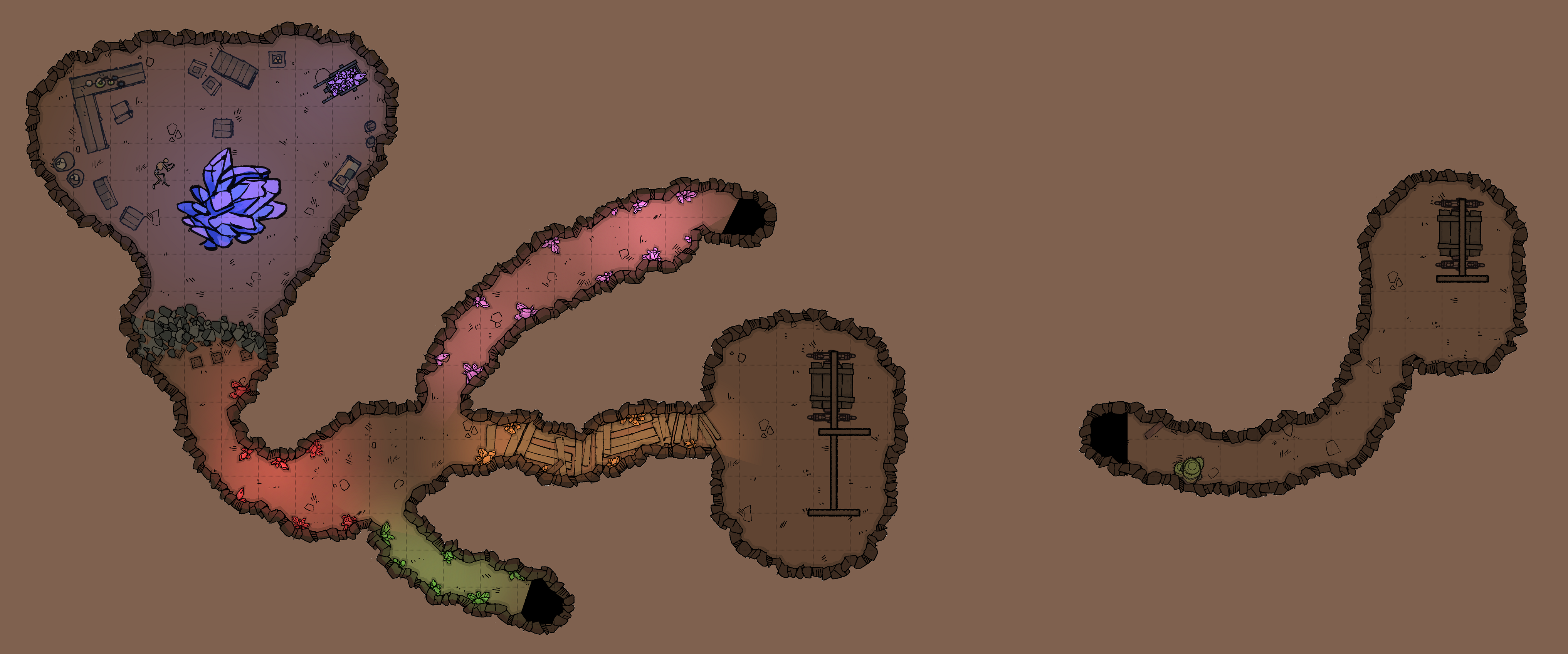 The mine is home to various brightly colored crystals that give off a faint glow in different colors. Halley's key is set such that it will lead to the heart of the mine, pointing to the color of the crystals in the correct path to the heart of the mine. A character with Halley's Key and a passive Perception score of 15 or higher can feel it move from their pocket.
