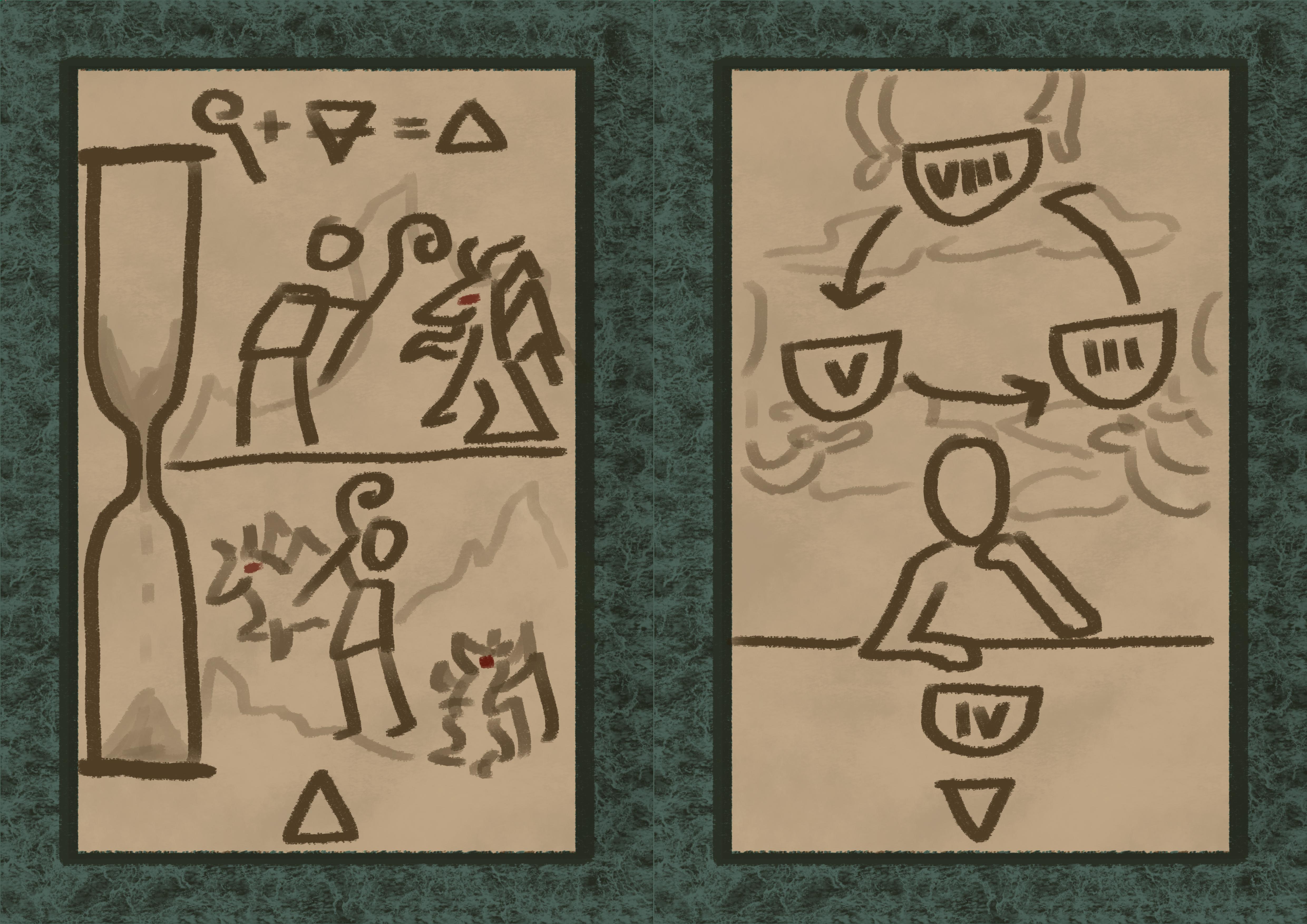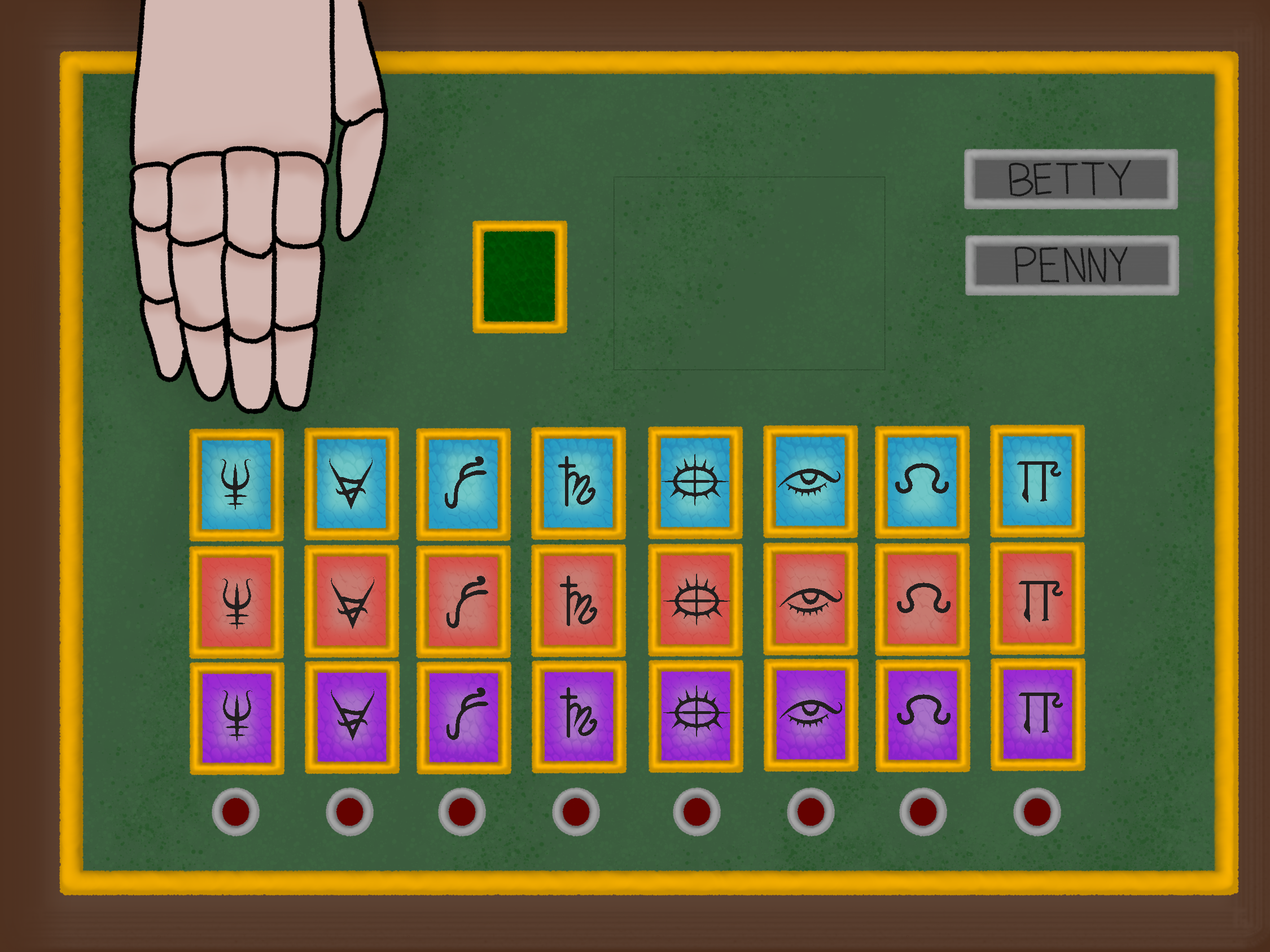 | Love | Arrow | Automaton card game, activated by symbols seen through red lens. |