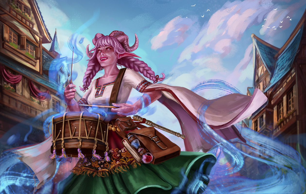 Troubadours are magical musicians, able to tug on the strands of the weave through their music. Where a wizard relies on focused study, or a cleric prays to their deity, a troubadour has a more instinctive and intuitive grasp of how to set the threads of magic resonating directly. They can cast spells quite capably, but are also capable of more direct manipulation, empowering their allies with thunderous strikes or quickening their steps.