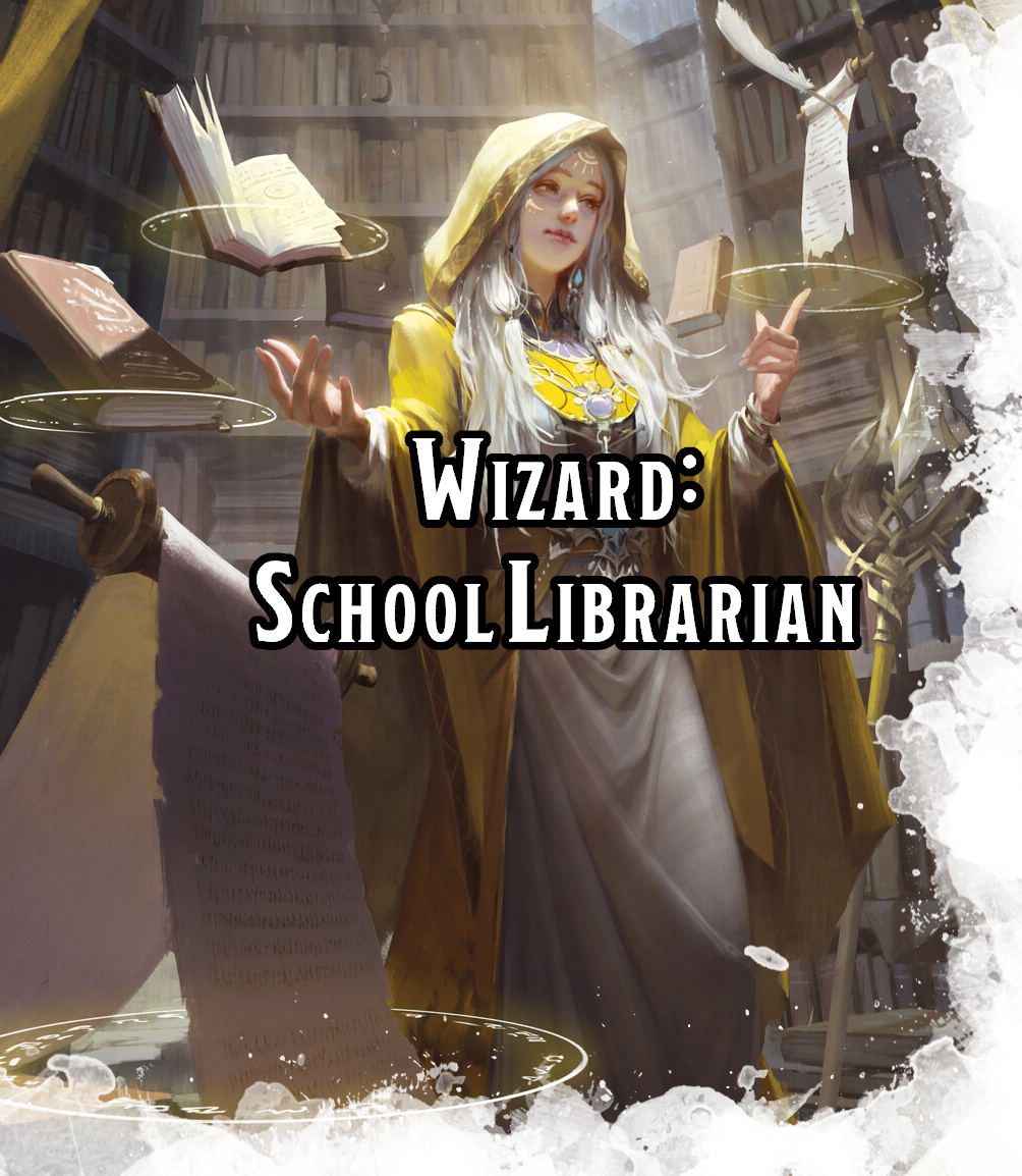 You are an adept librarian, keeping a safe reading environment, being a nexus of references and research, and maintaining books is your your highest goal. To achieve this task, you encourage an area that helps others focus and better gather information. School Librarians become adventurers for many reasons, from collecting late fees to finding lost books to transporting tomes long distances to being experts in research.