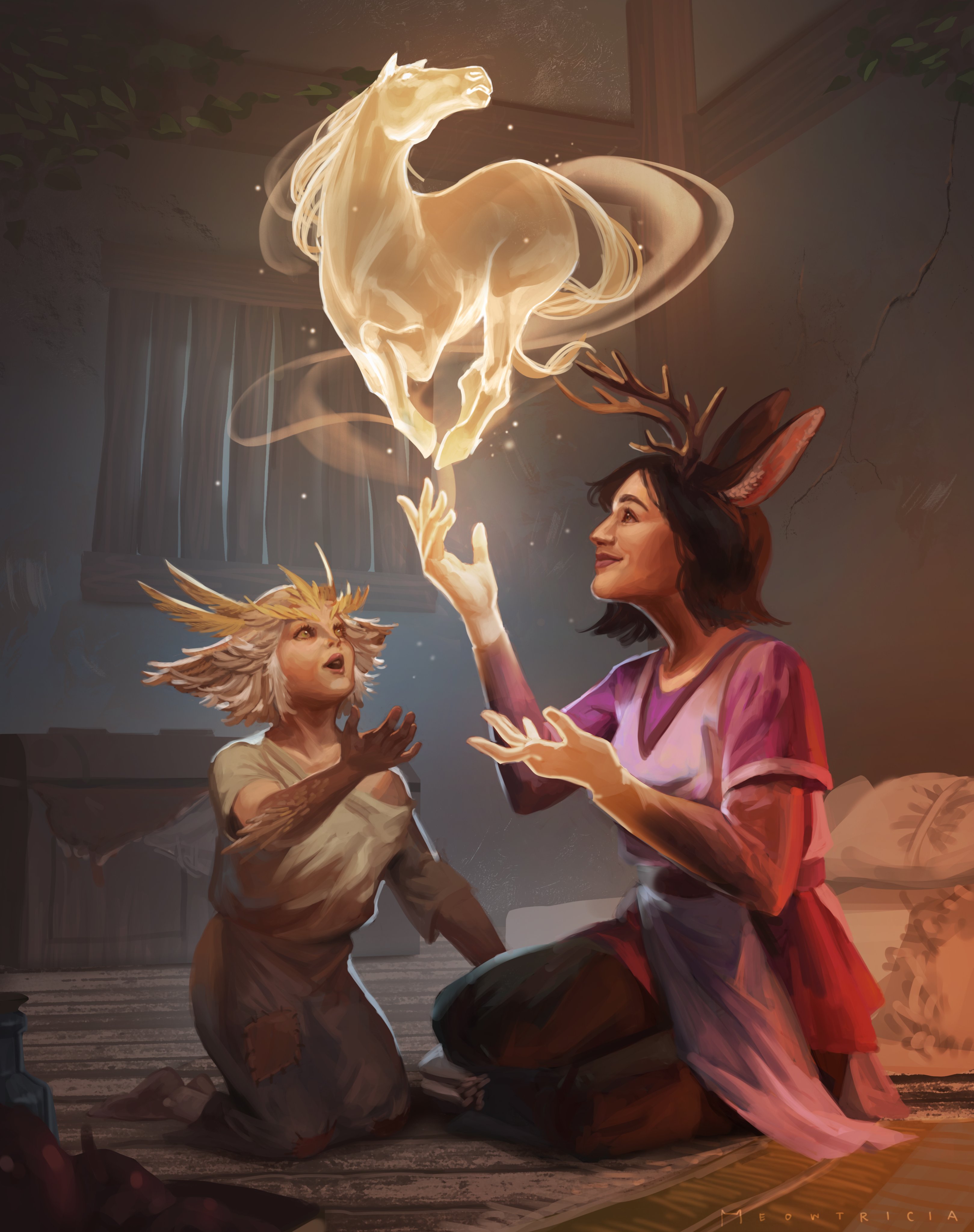 A fragile young mage walking by a alley way until noticing ruffians harrassing a woman. He throws out a crystal looking object in the middle of the ruffians. With a burst of light and primal magical energy, a bear-dog ambushing the surpised ruffians, attacking one while the others fled at a creature they never seen before. The mage successfully saving the lady.