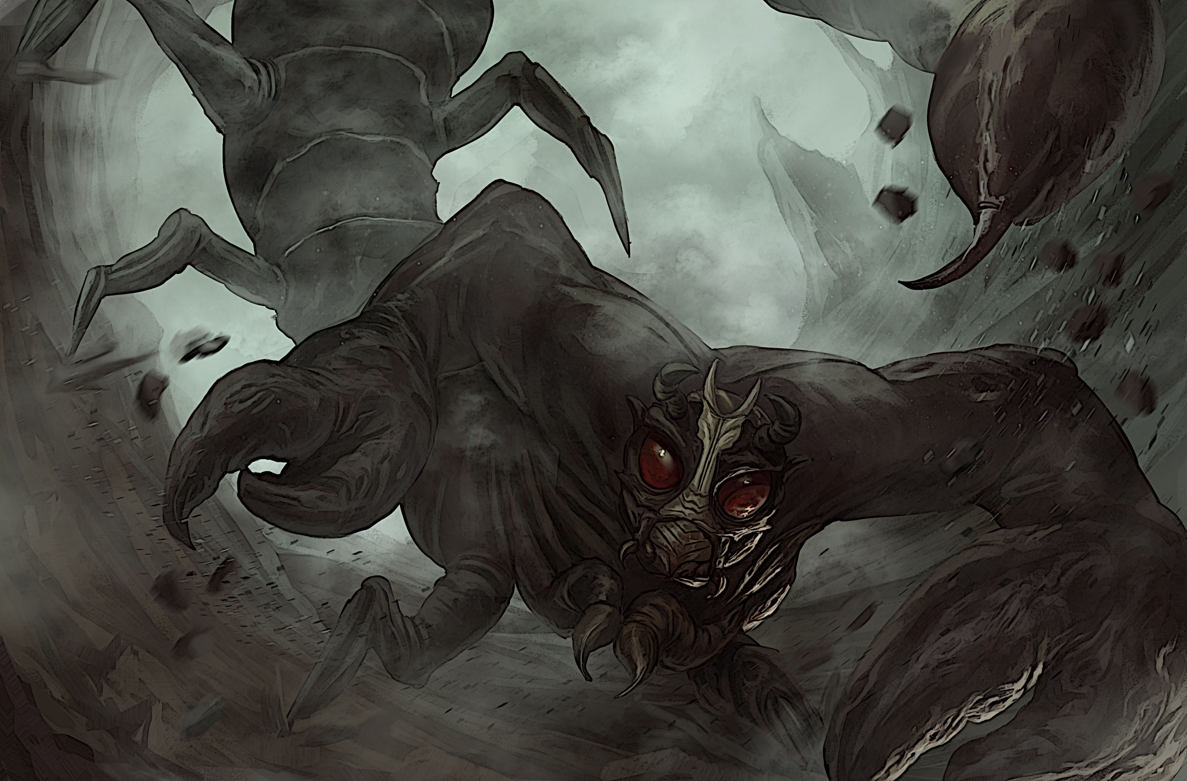The Doomstalker lays in wait, using its Quenching Chitin to hide in the darkness, where naive adventurers assume their darkvision keeps them safe. If the players did not have a source of light to see the Doomstalker, they are Surprised when initiative is rolled. It starts with its Envenomate, lunging its stinger towards them to do so. This powerful venom will take time to kill, so the Doomstalker then uses the time that the Surprise bought them to flee, using its Spider Climb to get through places the party can't easily follow.