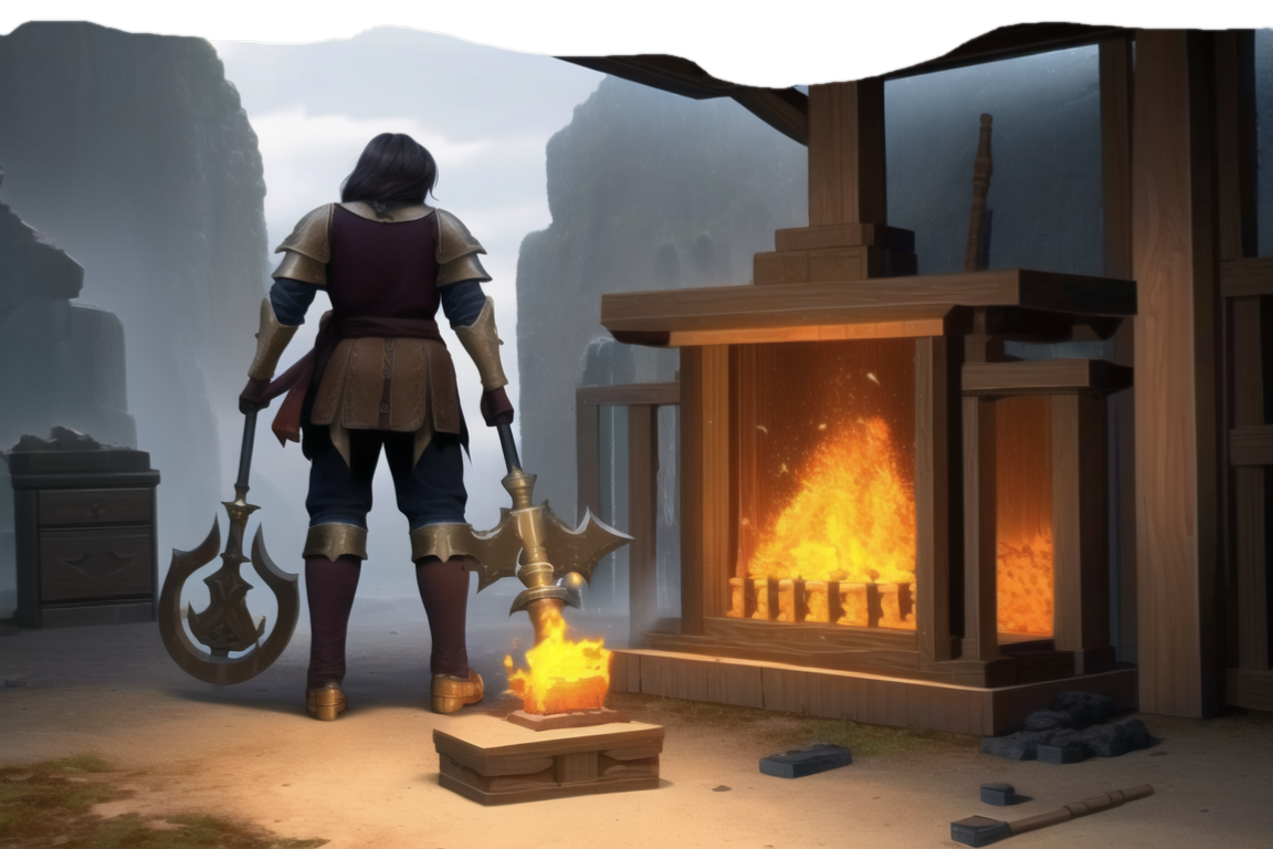 The gods of the forge are patrons of artisans who work with metal, from a humble blacksmith who keeps a village in horseshoes and plow blades to the mighty elf artisan whose diamond-tipped arrows of mithral have felled demon lords. The gods of the forge teach that, with patience and hard work, even the most intractable metal can be transformed from a lump of ore to a beautifully wrought object. Clerics of these deities search for objects lost to the forces of darkness, liberate mines overrun by orcs, and uncover rare and wondrous materials necessary to create potent magic items. Followers of these gods take great pride in their work, and they are willing to craft and use heavy armor and powerful weapons to protect them. Deities of this domain include Gond, Reorx, Onatar, Moradin, Hephaestus, and Goibhniu.