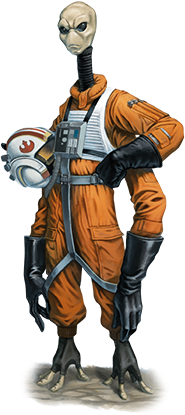 The zilkins are a bipedal, amphibious species discernible by their diminutive stature and stalk eyes. Their homeworld, Zilk, has many dense jungles and swamps deemed impossible to navigate by most species. Only the zilkins themselves, evolved from worm-like creatures, were able to easily slip through the gaps in the tangled, coarse foliage. Their powerful legs make them adept at swimming and leaping.