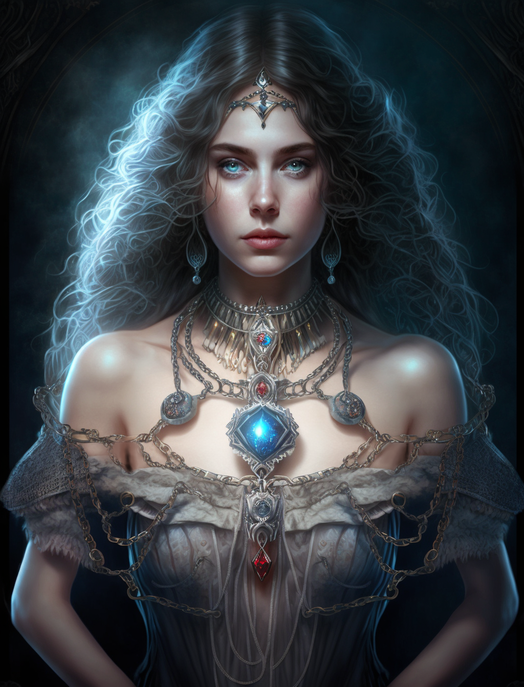 A mystic raises a crystal lens to her eye inspecting beautiful gem held by a grotesque statue. She holds up a hand to halt her colleagues. "As I suspected. The amulet has a curse on it, a powerful one."