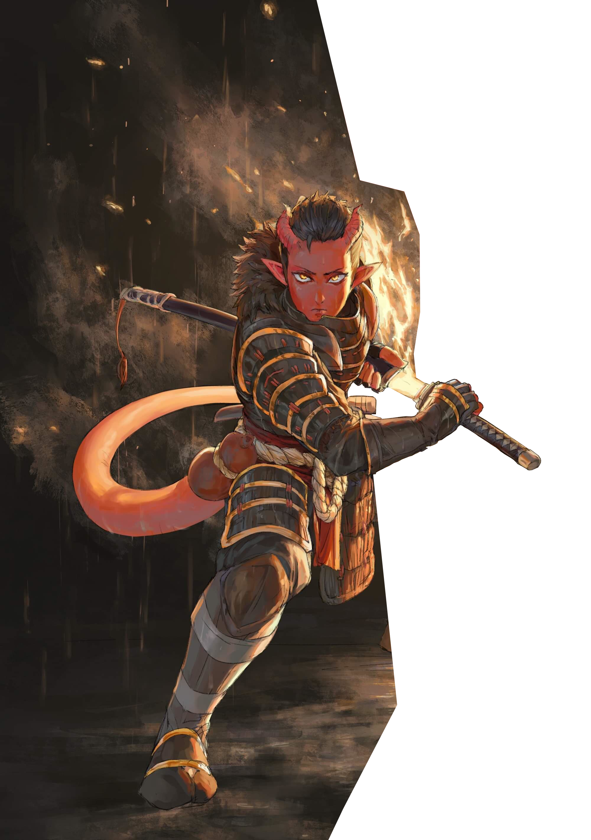 - Back Cover: Tiefling Hexblade Warlock by RobustaArt