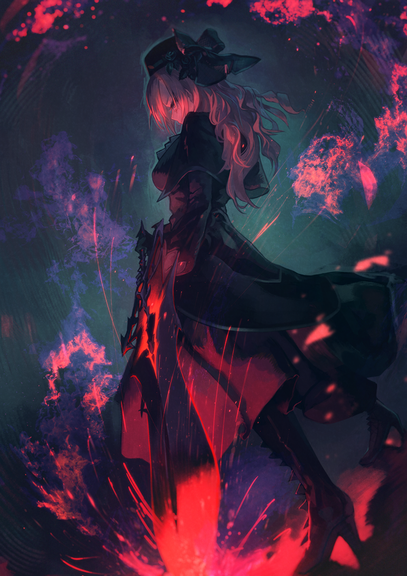 A knight, bloodied and exhausted, dances with his foe as the moon shines brightly above the two of them. Even though his wounds are debilitating, he only swings his blade quicker, with far more force, and moves with significantly more agility than when he was unharmed, to the surprise of his enemy.