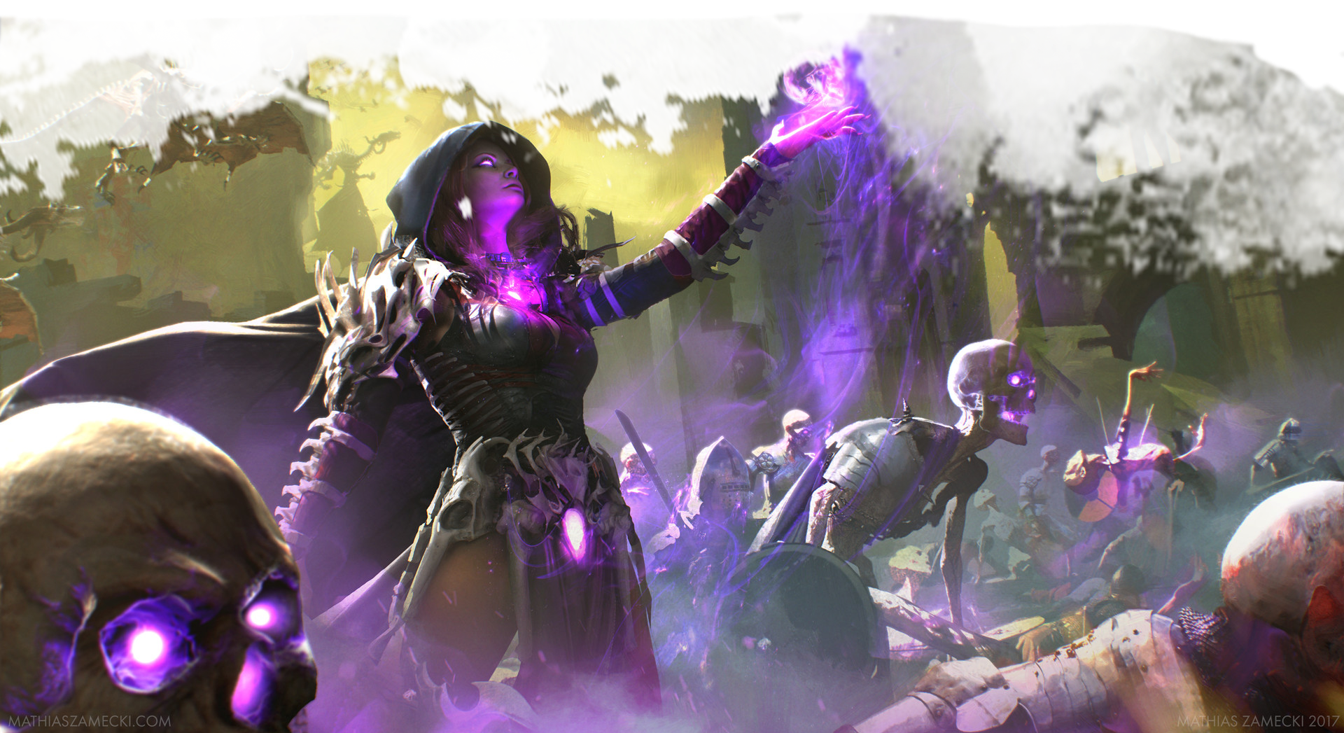 Necromancers exert control over undead creatures. Unlike hordes of wild undead, the undead controlled by a necromancer act as one unit, often running or shambling to each other’s aid when a member of the horde is injured or destroyed.