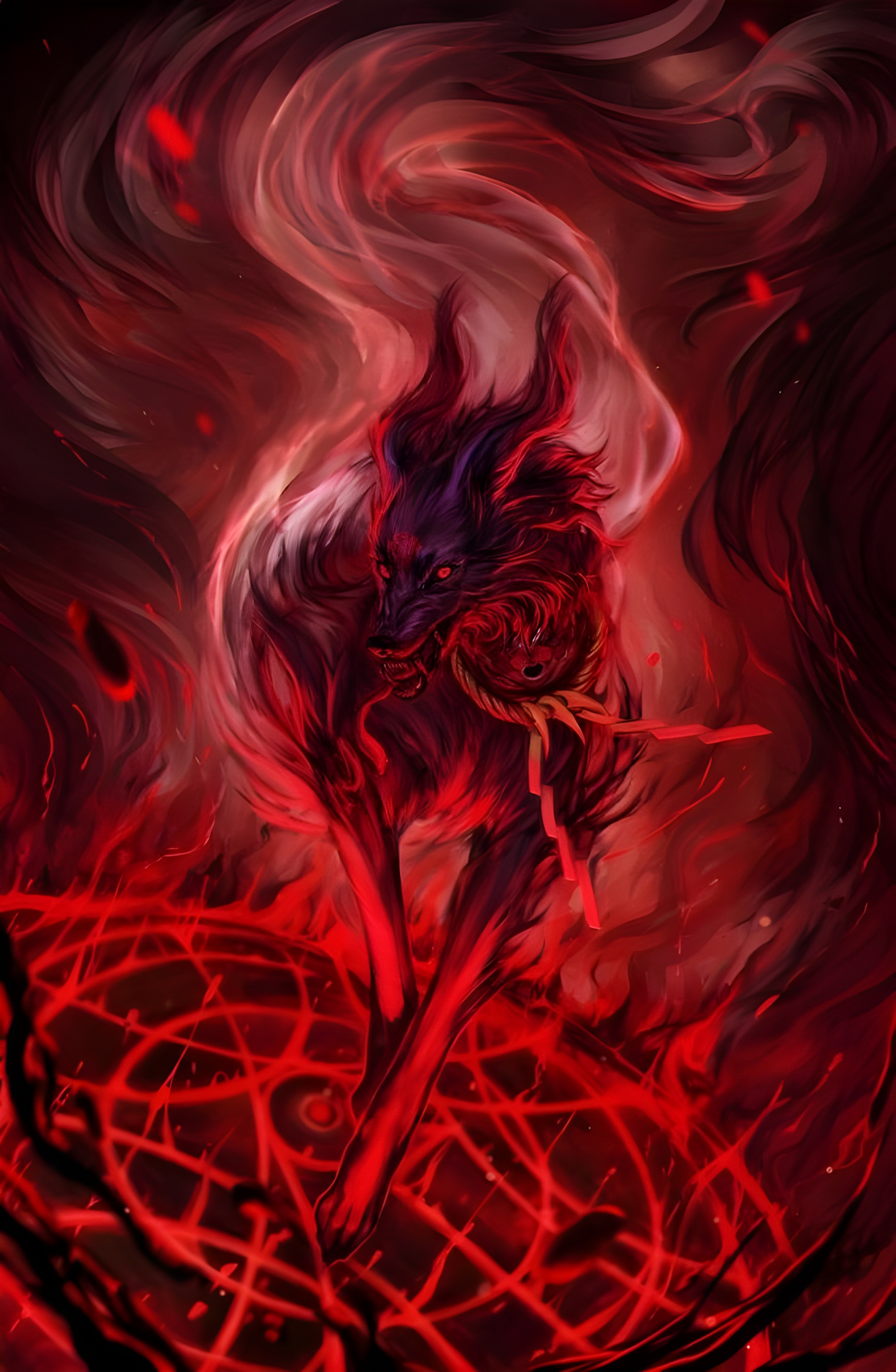 You detonate all your remaining stars but one to designate a target to become the subject of all of yours and the Heavenly Wolf's hatred. The area within a 30-foot radius around you turns blood red and fills with astral chains, Creatures Hostile to you cannot leave this radius by any means unless they end out of the area as a result of your movement, as this Zone travels with you. You also ignore the resistances and immunities of the target of your hatred, and When you hit it with the Heavenly Wolf Sword you have a bonus to the damage roll equal to your charisma modifier.