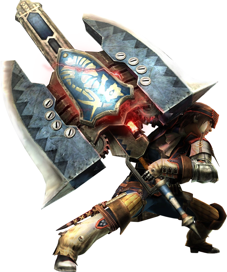This sword and shield combo stores energy in elemental phials. They can be combined to create an enormous axe and unleash a devastating elemental attack.