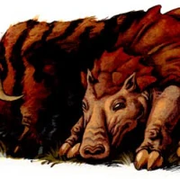 A small, piglike creature with a hard shell and a flat, snuffling snout, this timid beast noses about the undergrowth for food along with its herd-mates.
