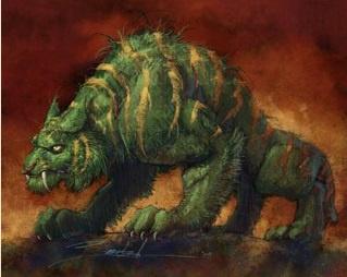 The tail of the Baazrag is about five inches long. Newborns are red-brown, green, yellow, or orange, but the color fades gradually to a sandy gray at old age.