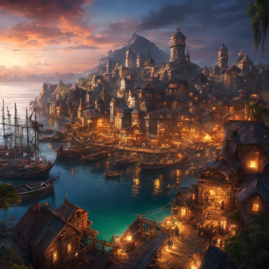 Nestled a mere mile westward from the city's bustling heart lies a bustling coastal port. It is from these docks that the famous Captain Briggs commands her formidable armada of warships, safeguarding the city and its people from potential threats.